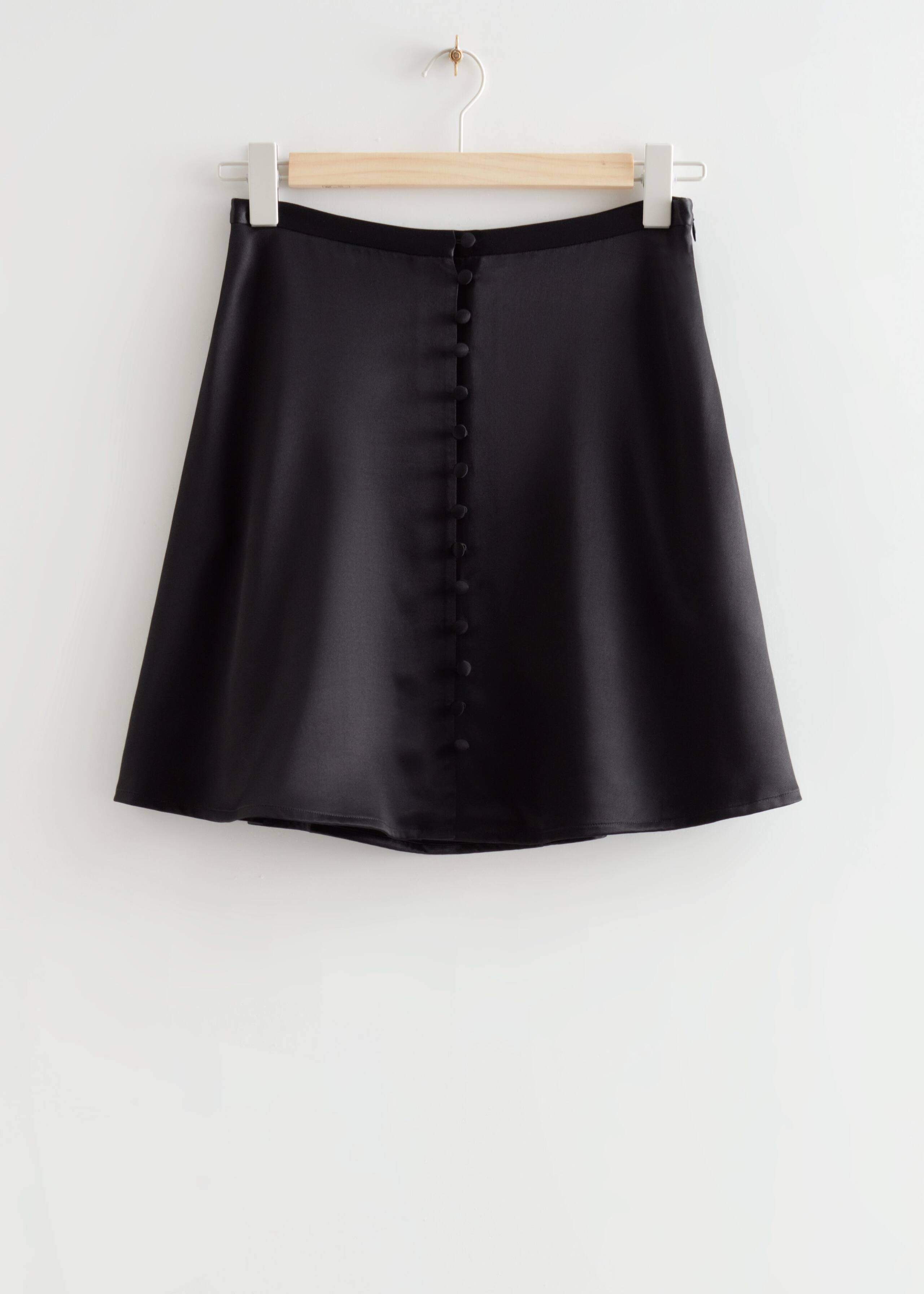 Minirock in A-Linie mit Knopfverschluss vorne in der Mitte.