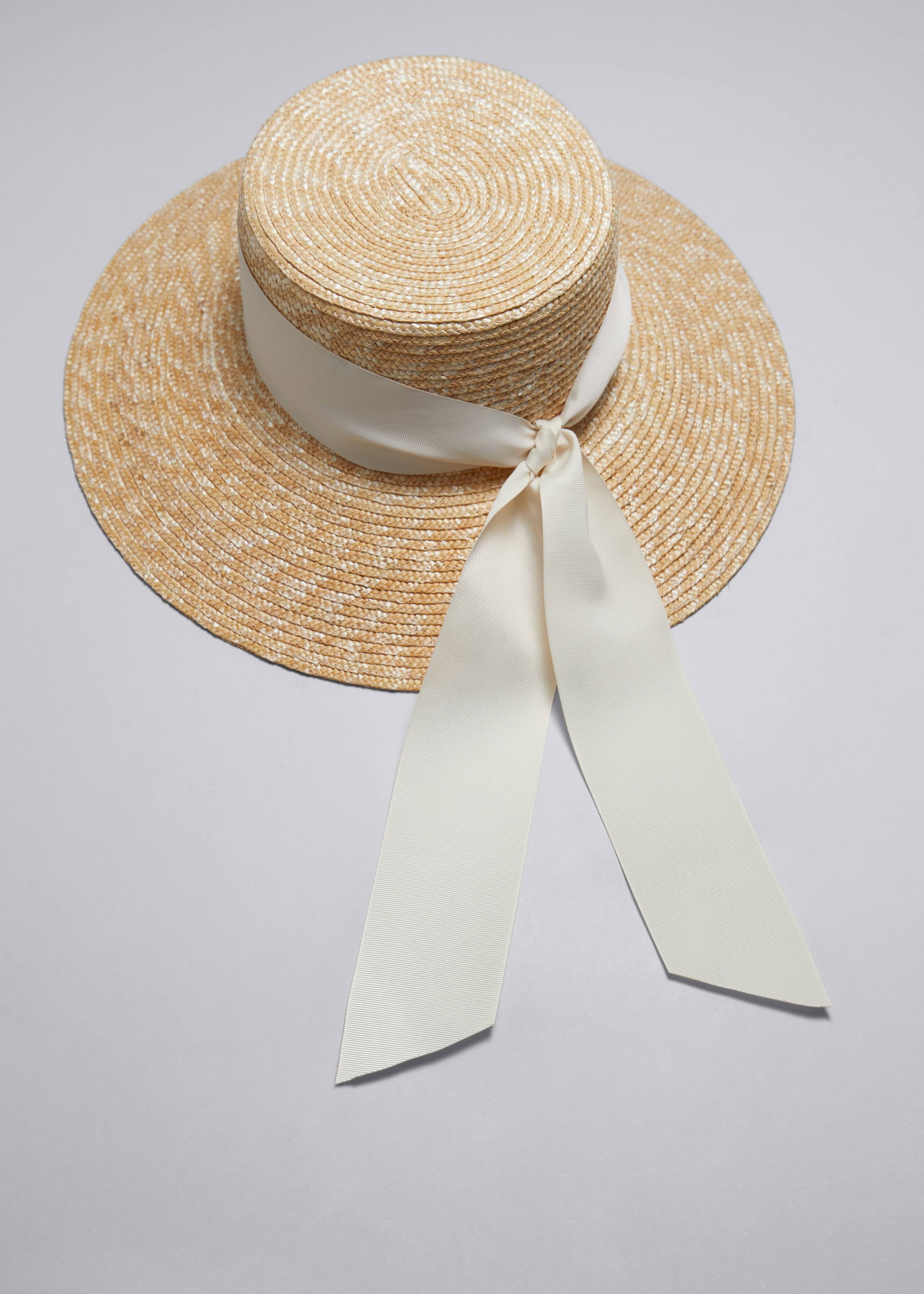 Dieser Hut besteht aus gewebtem, natürlichem Stroh und ist mit einem klassischen Ripsband an der Krone verziert. Die Krempe schützt dein Gesicht perfekt vor Sonnenstrahlen.