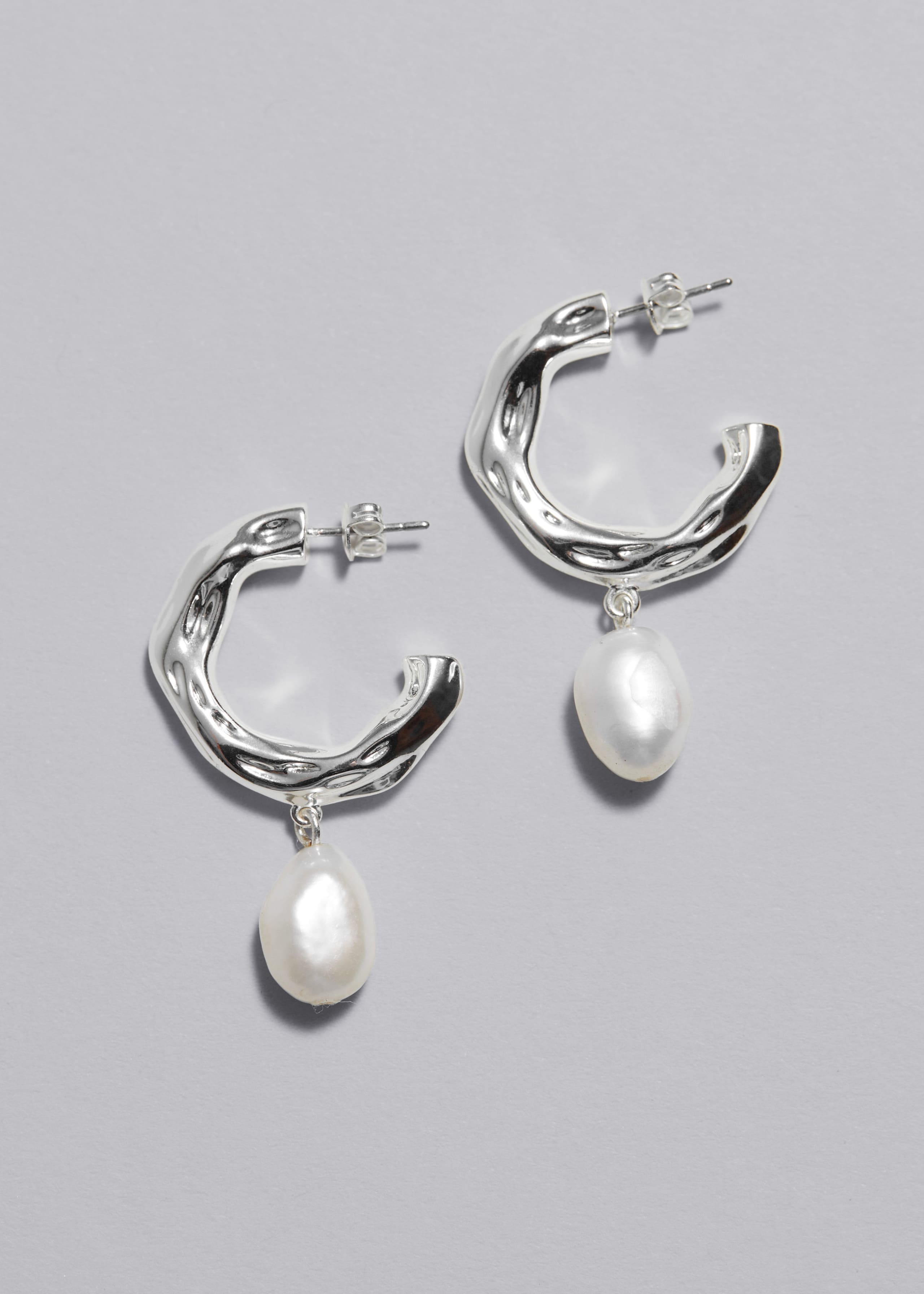 Glänzende Süßwasserperlen verleihen diesen markanten, organisch geformten Creolen aus Messing einen eleganten Schimmer.