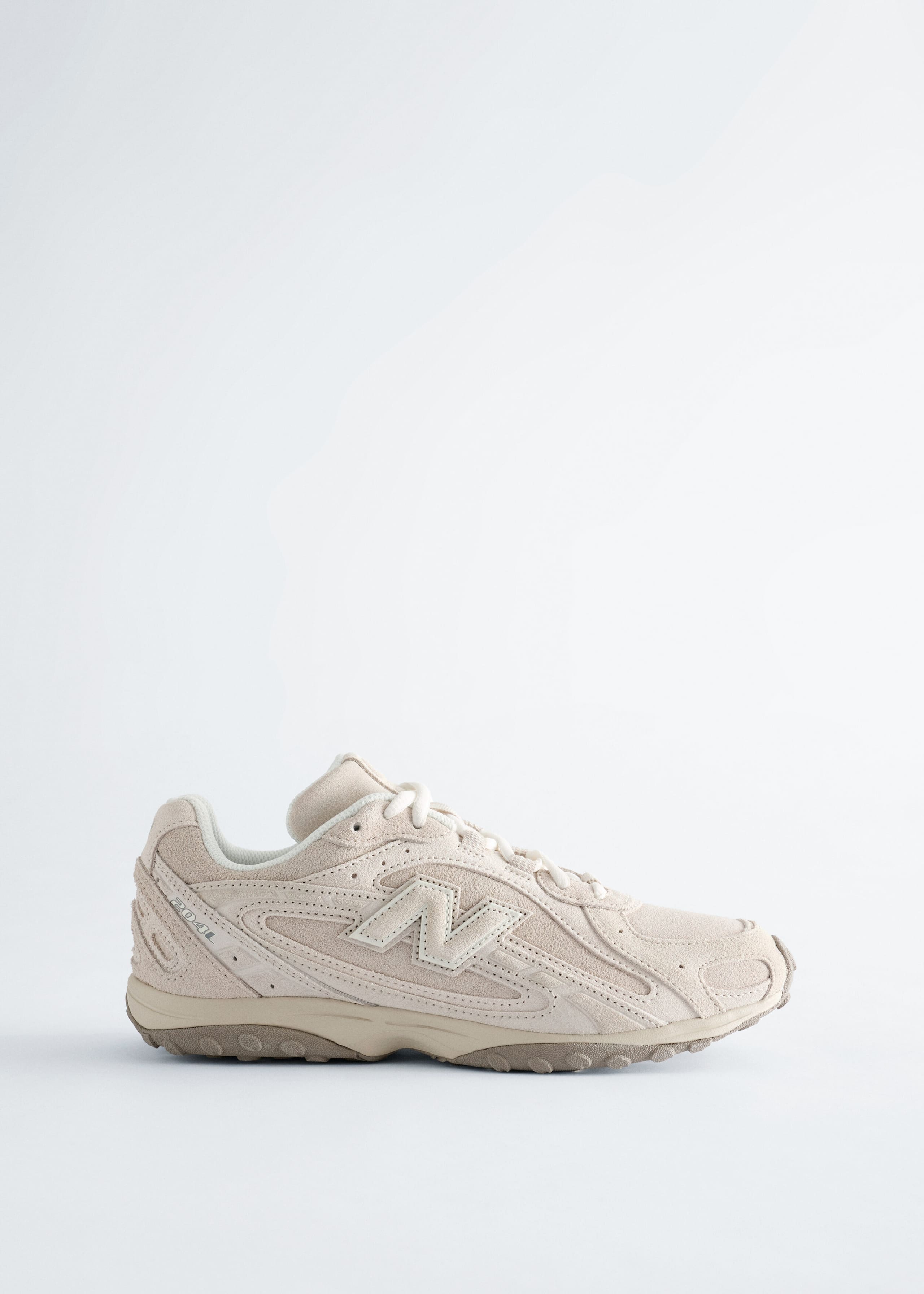 This low-profile silhouette blends the slim shape of '70s running shoes with tech-inspired suede textures. Features a multi-piece upper with embossed overlays, screen-printed graphics on the saddle, and a distinctive outsole with a 2000s-style strike path and '70s-inspired tread.