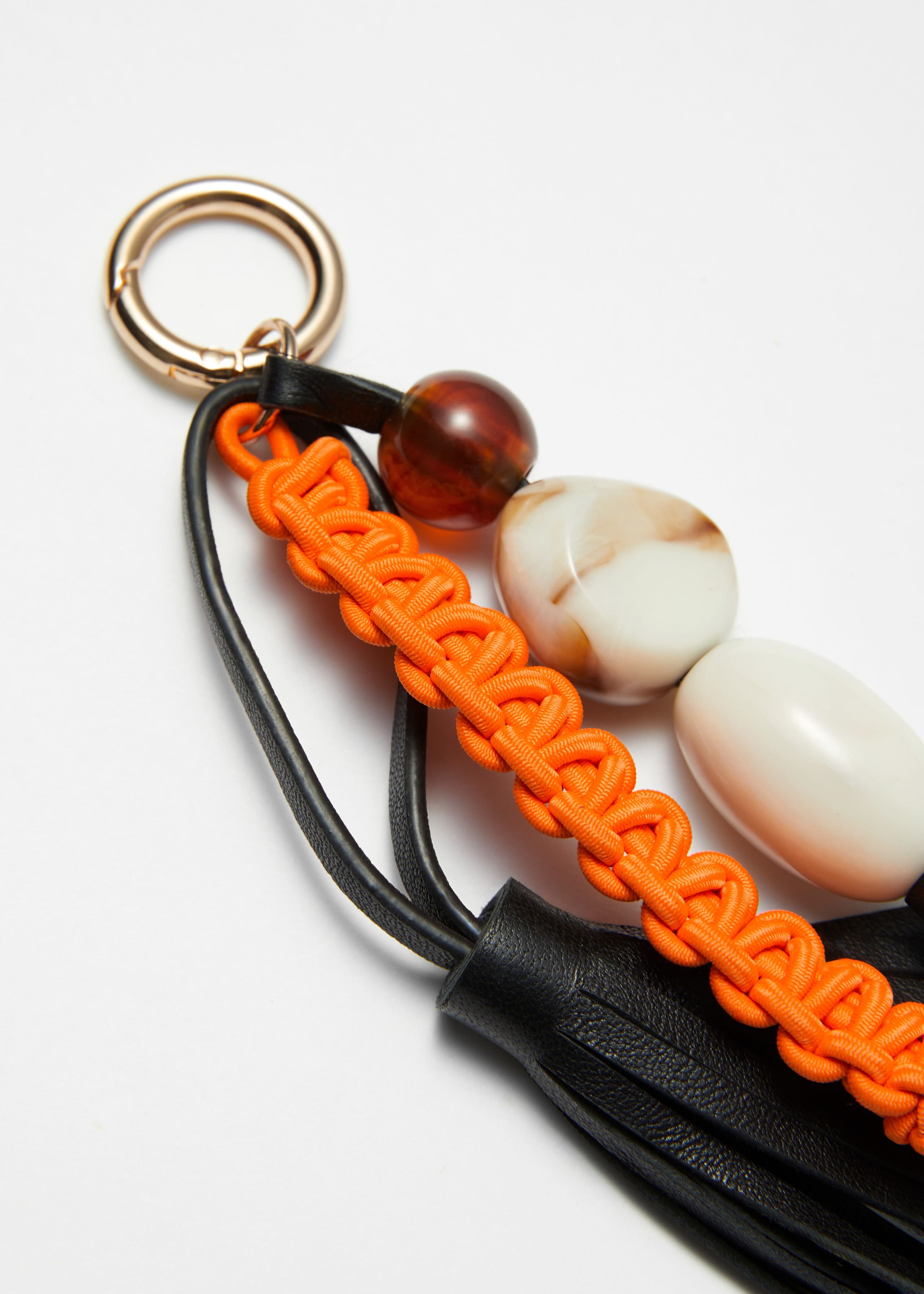 Dieser verspielt gestaltete Taschenanhänger verfügt über eine Reihe von Anhängern, darunter eine Lederquaste und Steinperlen. Befestige ihn an deiner Lieblingstasche.
