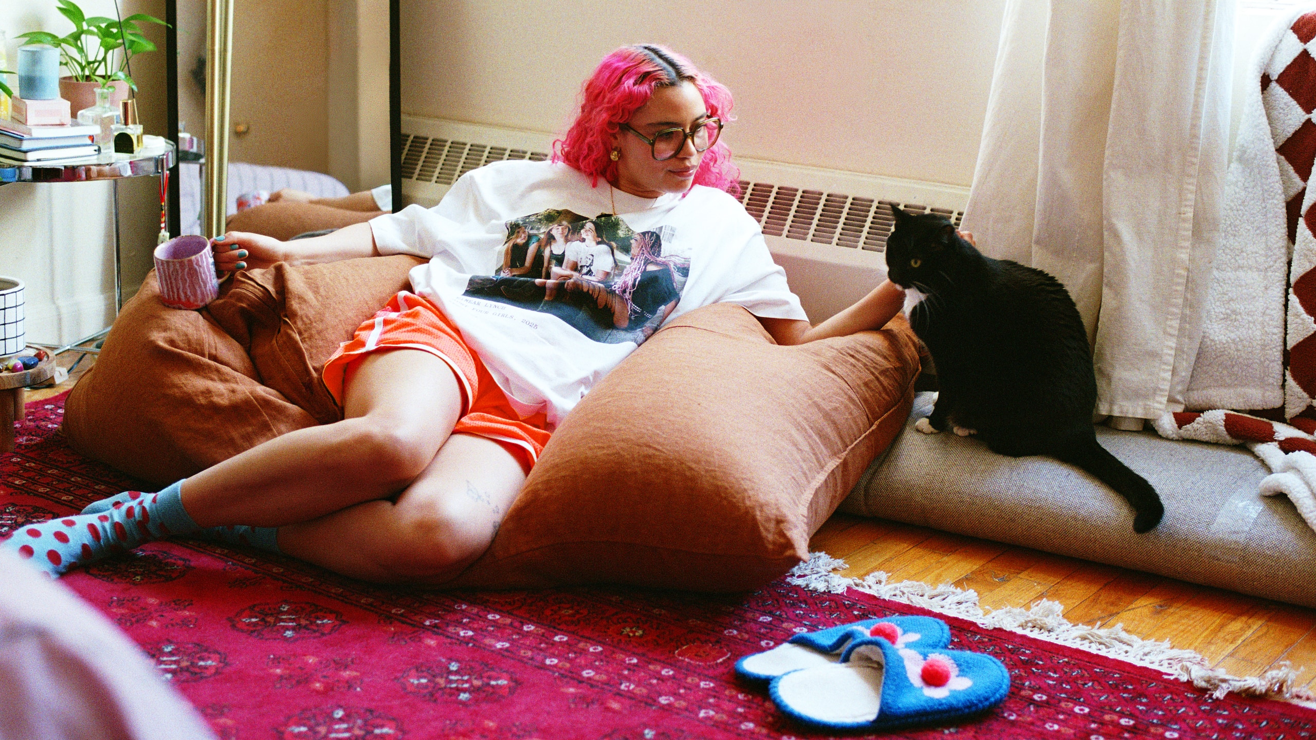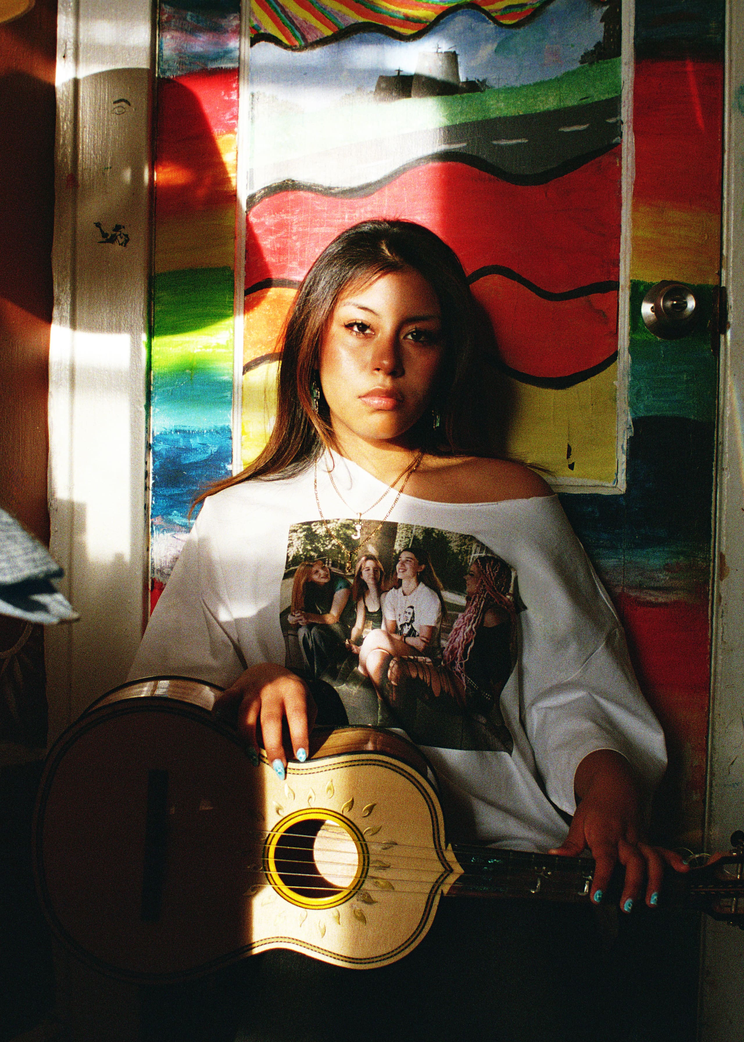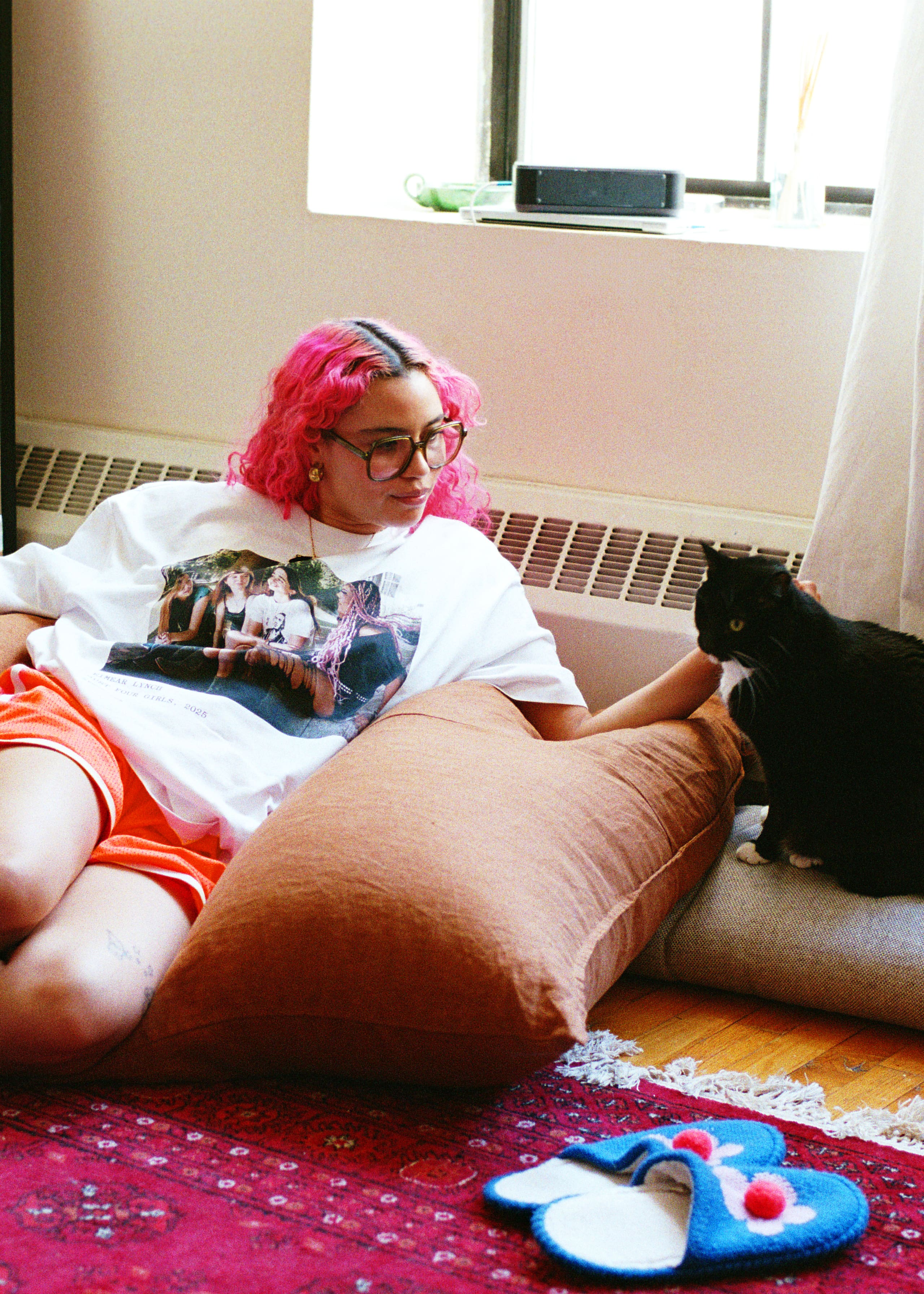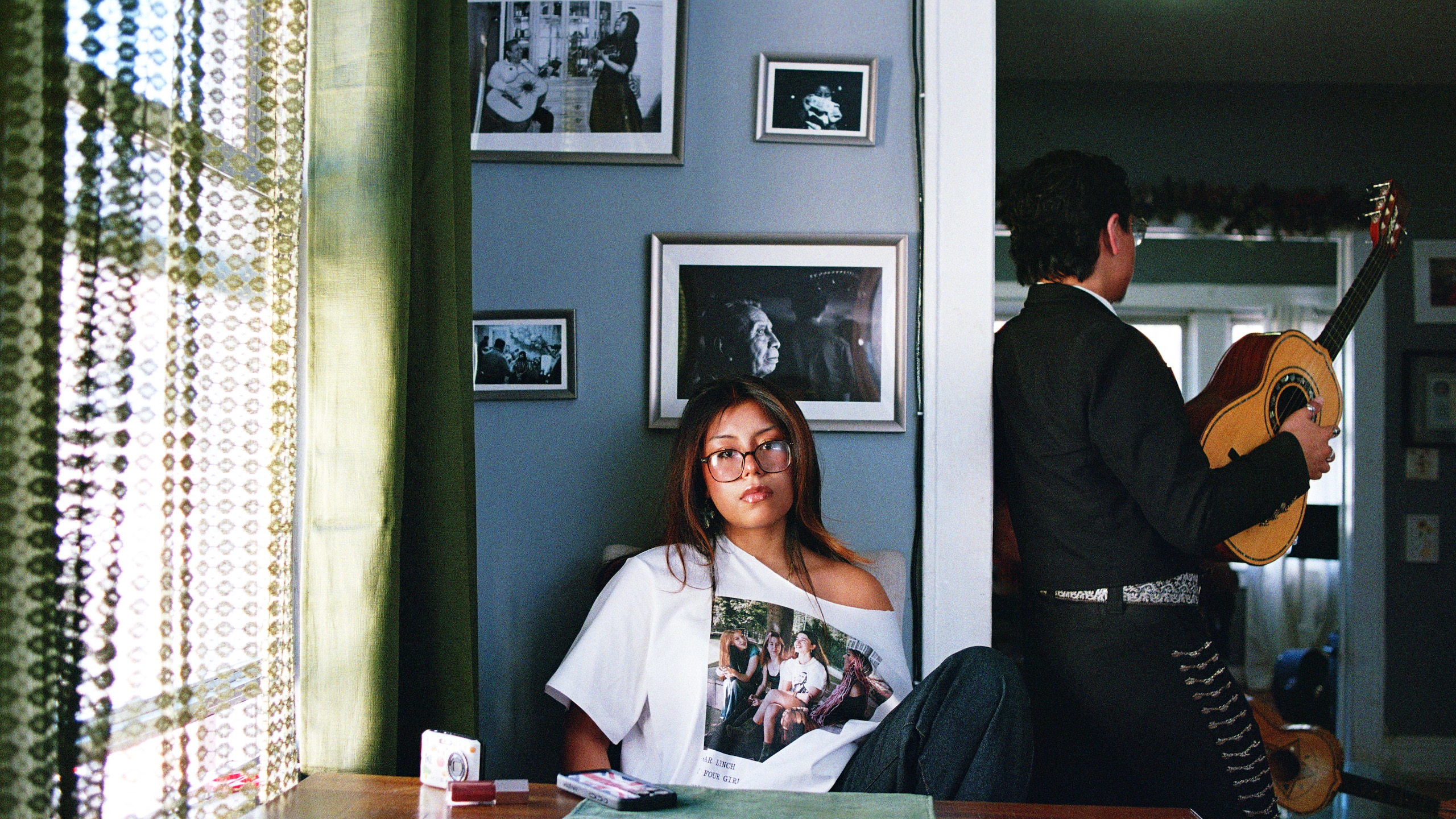1: T-Shirt getragen von Jazmine Brown, Influencerin und Lifestyle-Fürsprecherin. 2: T-Shirt getragen von Jazmin Reyes, Mariachi-Musikerin.