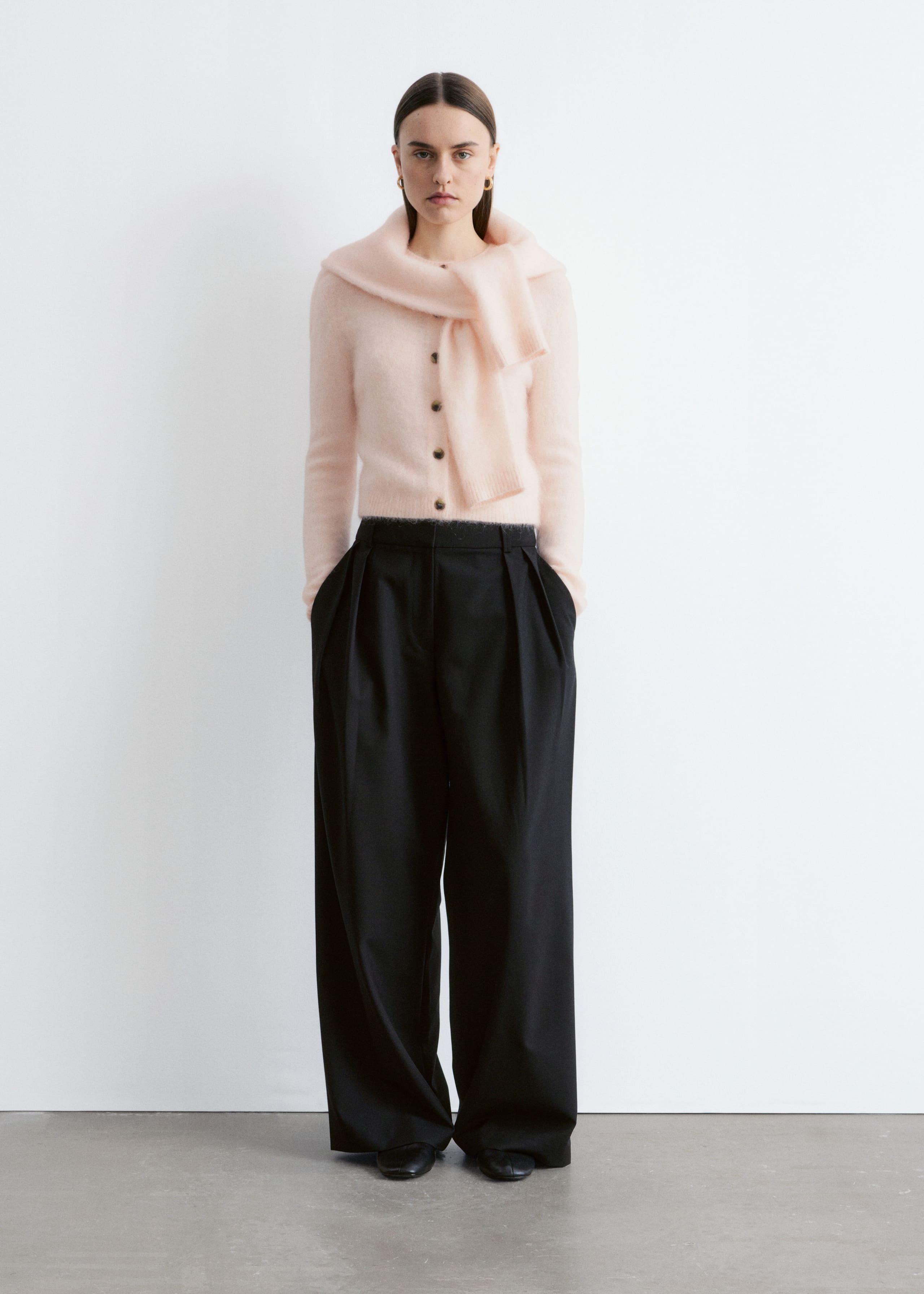 Diese Bluse aus leichtem Material hat eine fließende Silhouette mit einem umgeschlagenen Stehkragen, breiten geknöpften Manschetten und eine Schlüssellochöffnung mit Knopfverschluss im Nacken.