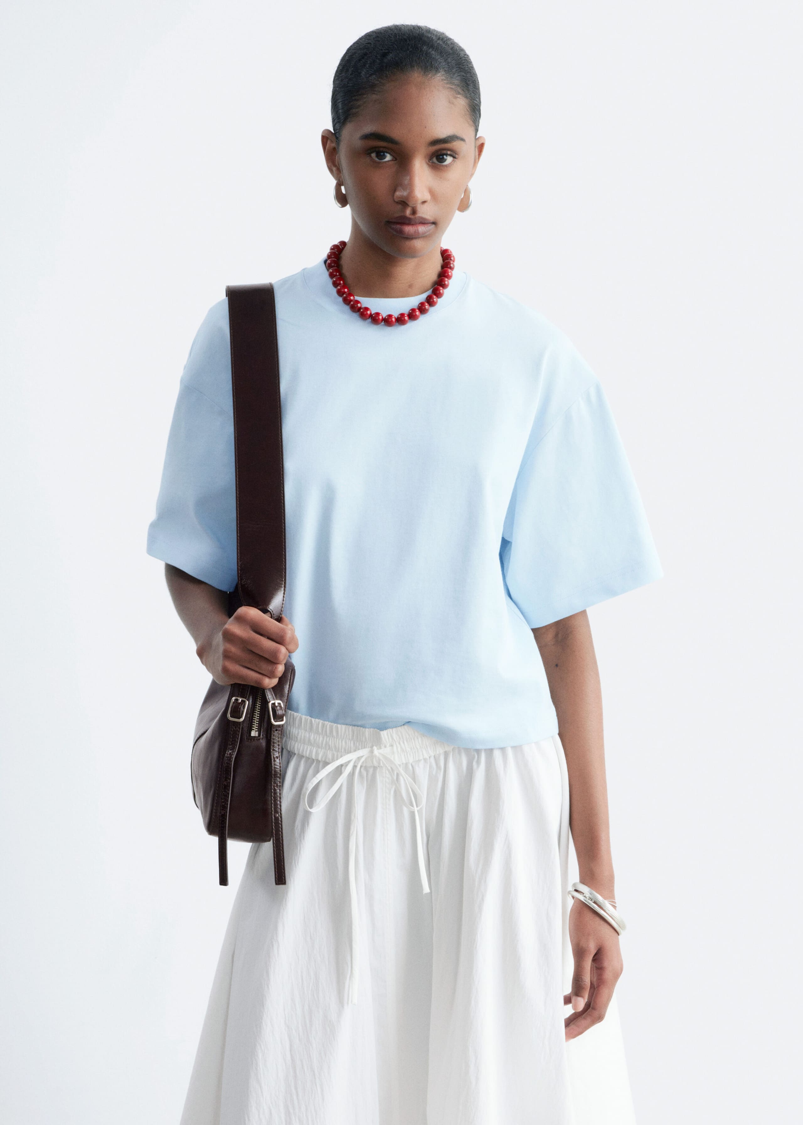 Dieses bedruckte Jersey-Oberteil ist aus einer Viskosemischung gefertigt. Es hat eine körpernahe Silhouette und einen Stehkragen. Kombiniere es mit Jeans oder eleganten Hosen. Länge des Oberteils: 56 cm (Größe S)