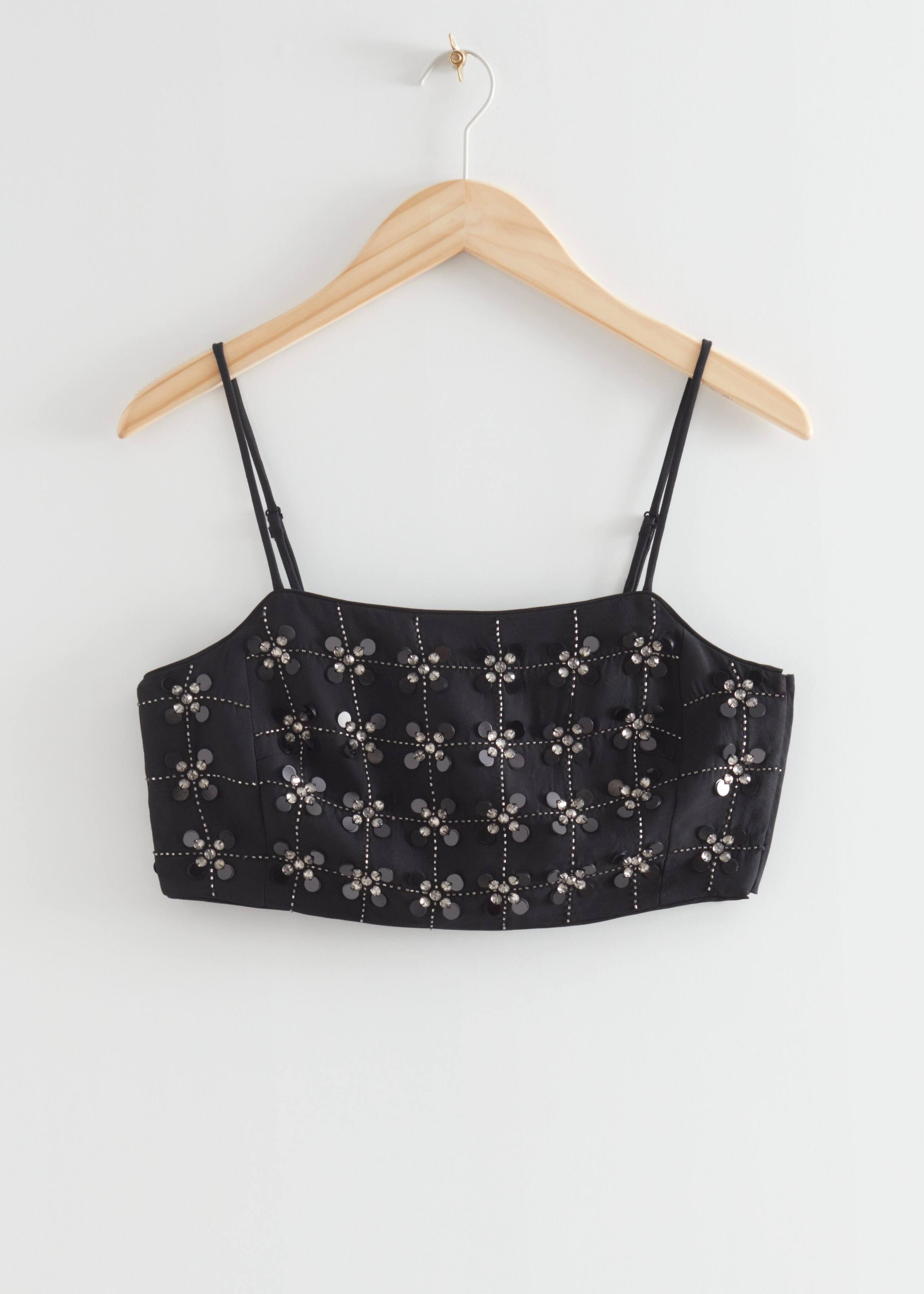 Kurzes Partytop mit Pailletten und schmalen, verstellbaren Trägern.