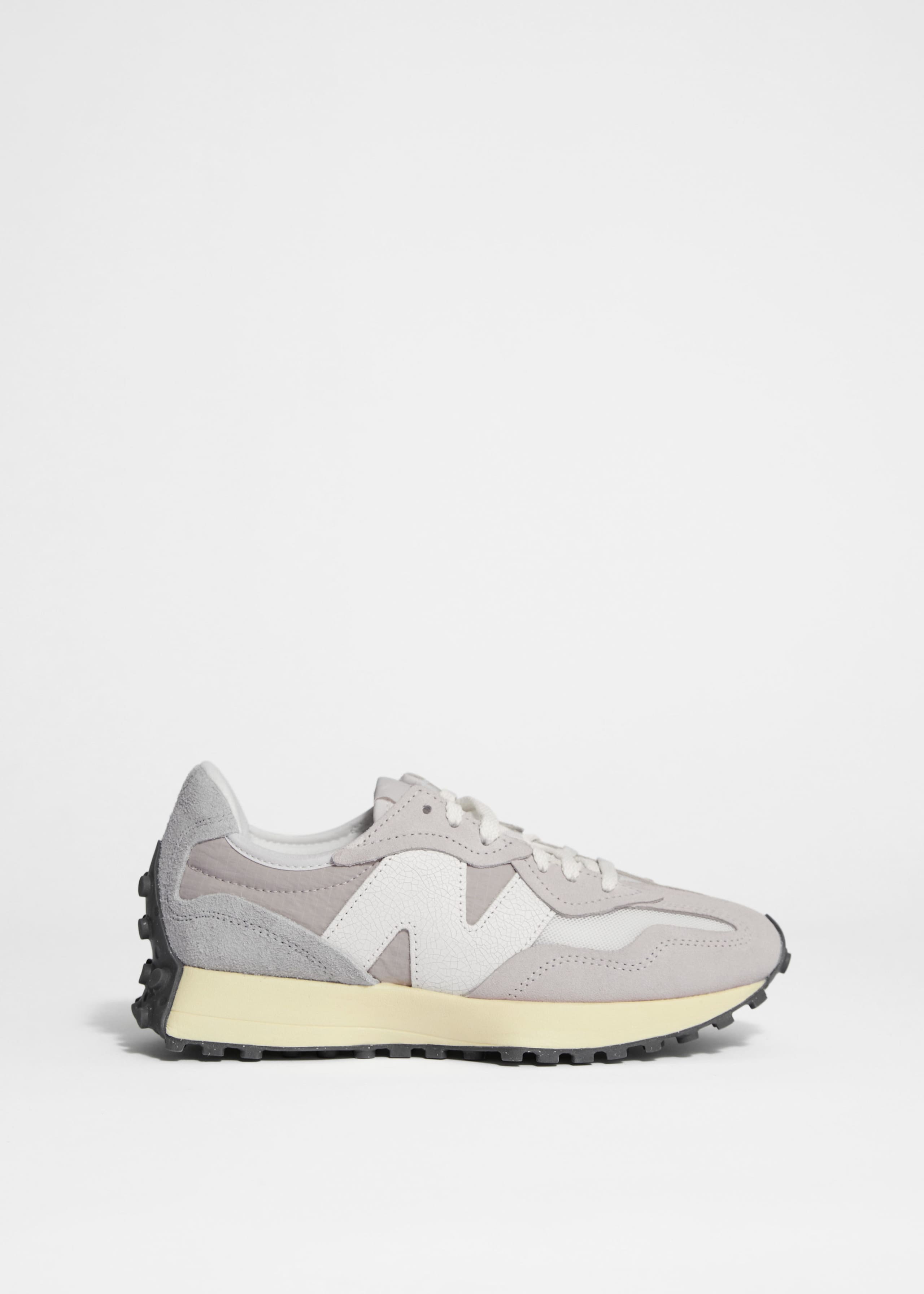 Der Sneaker New Balance 327 verfügt über eine schlichte Silhouette, aufgewertet durch Retro-Strukturdetails, ein auffälliges Logo, ein leichtes Obermaterial aus Leder, genähte Details aus Wildleder und eine Gummisohle. Er setzt ein starkes Style-Statement und sieht gleichzeitig mühelos schick aus.