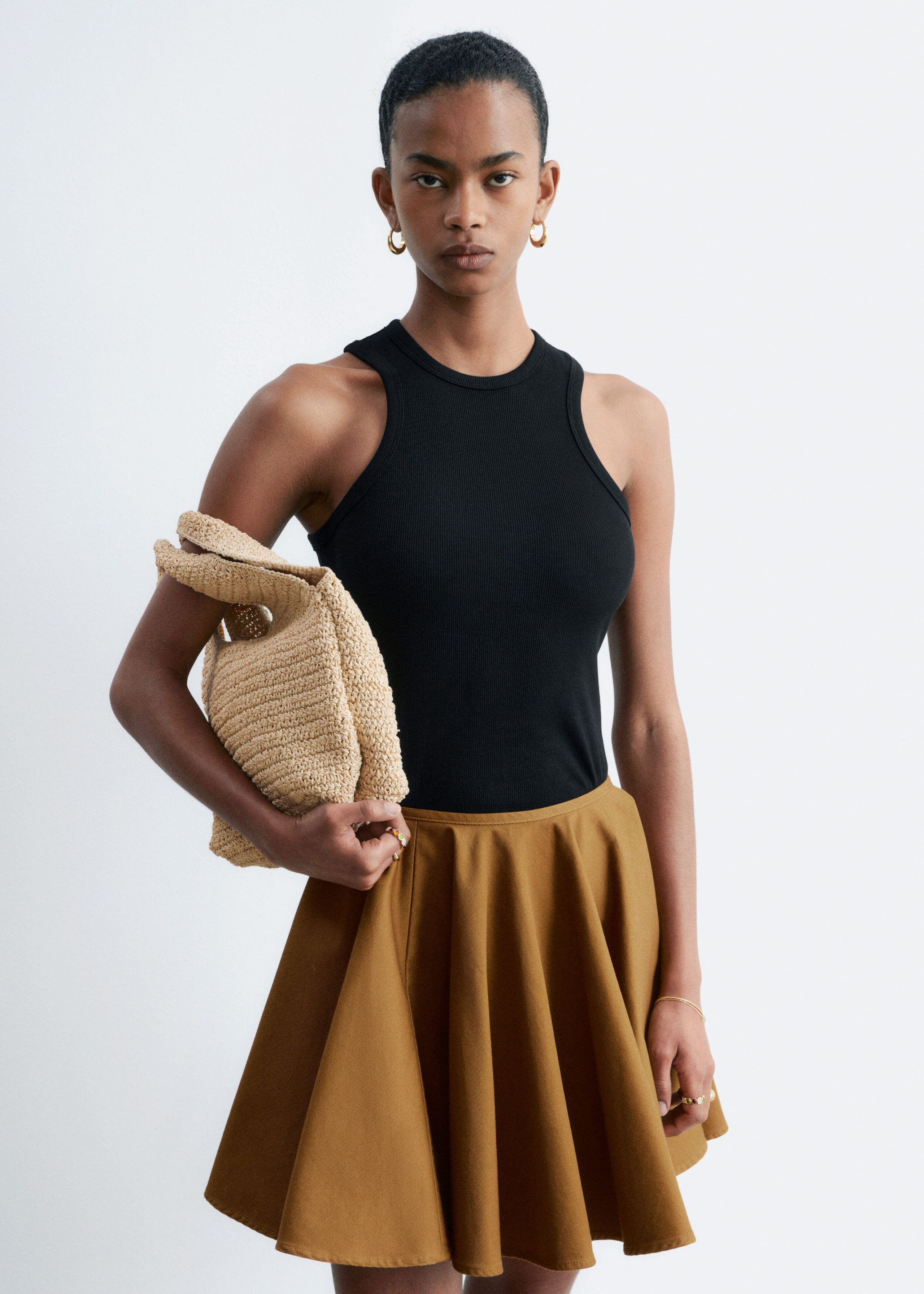 Dieses ärmellose Oberteil aus einem fließenden Stoff hat einen weich fallenden Wasserfallausschnitt. Der gedrehte Schulterträger und der seitliche Kordelzug sorgen für einen drapierten, individuell anpassbaren Look.
