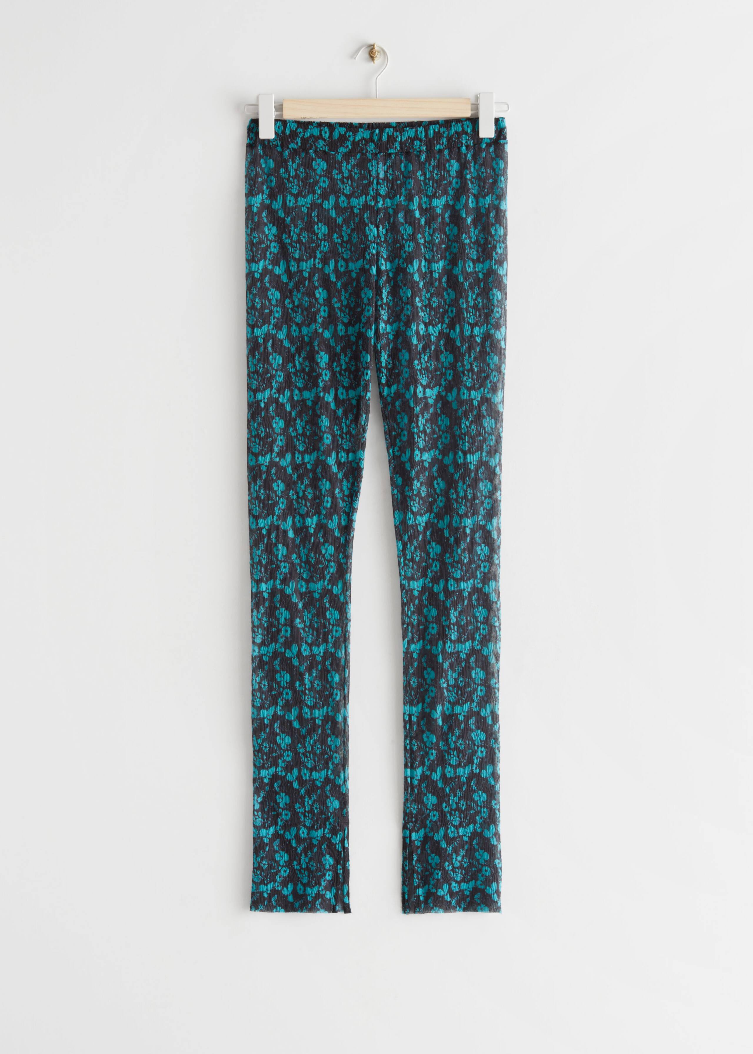 Figurbetonte, bedruckte Leggings mit elastischem Bund, Seitenschlitzen und Beininnenseite.