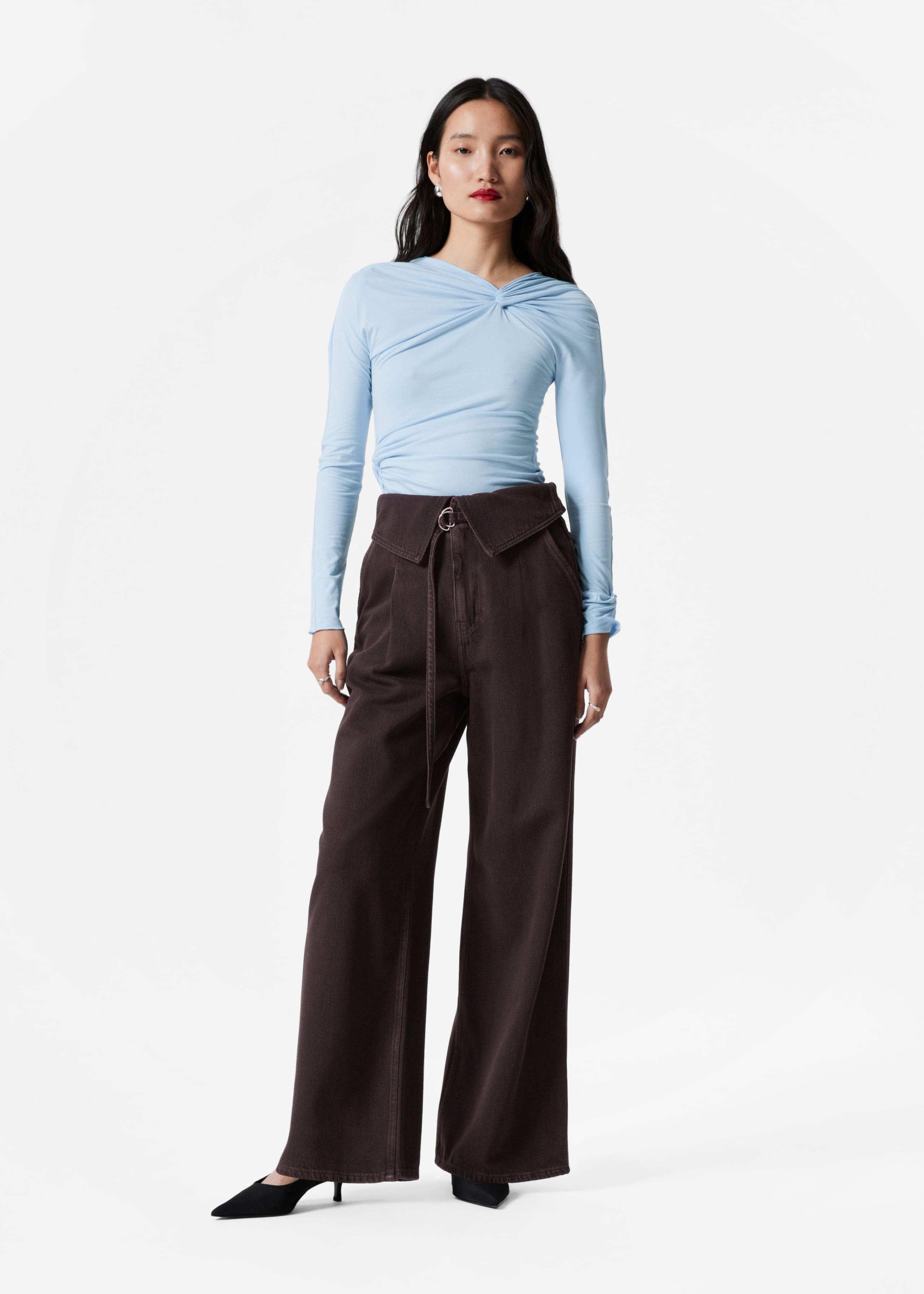 Top mit einem gedrehten Knoten und einer Raffung am Ausschnitt. Aus dehnbarem Jersey mit einer hautengen Passform.