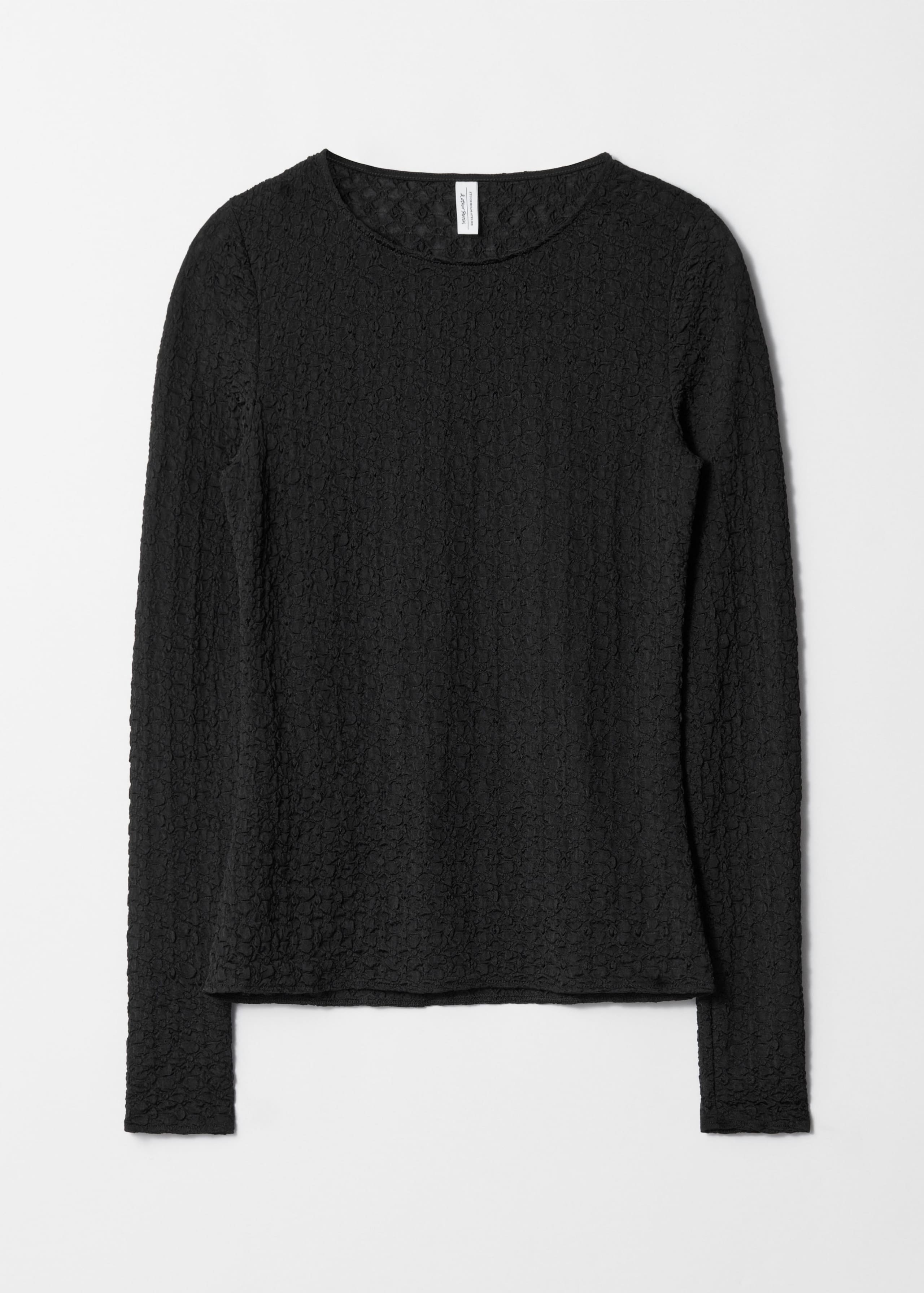 Long-sleeved top with a smocked texture and a slim, second-skin silhouette.