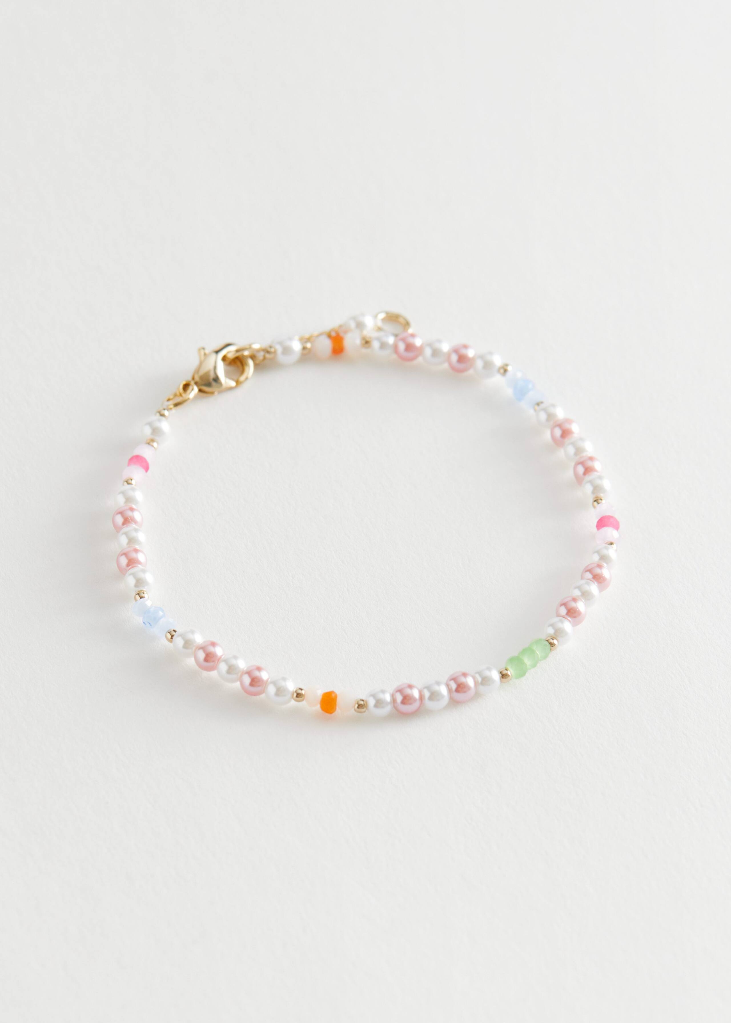 Bracelet accented with multi-coloured glass beads in organic shapes.