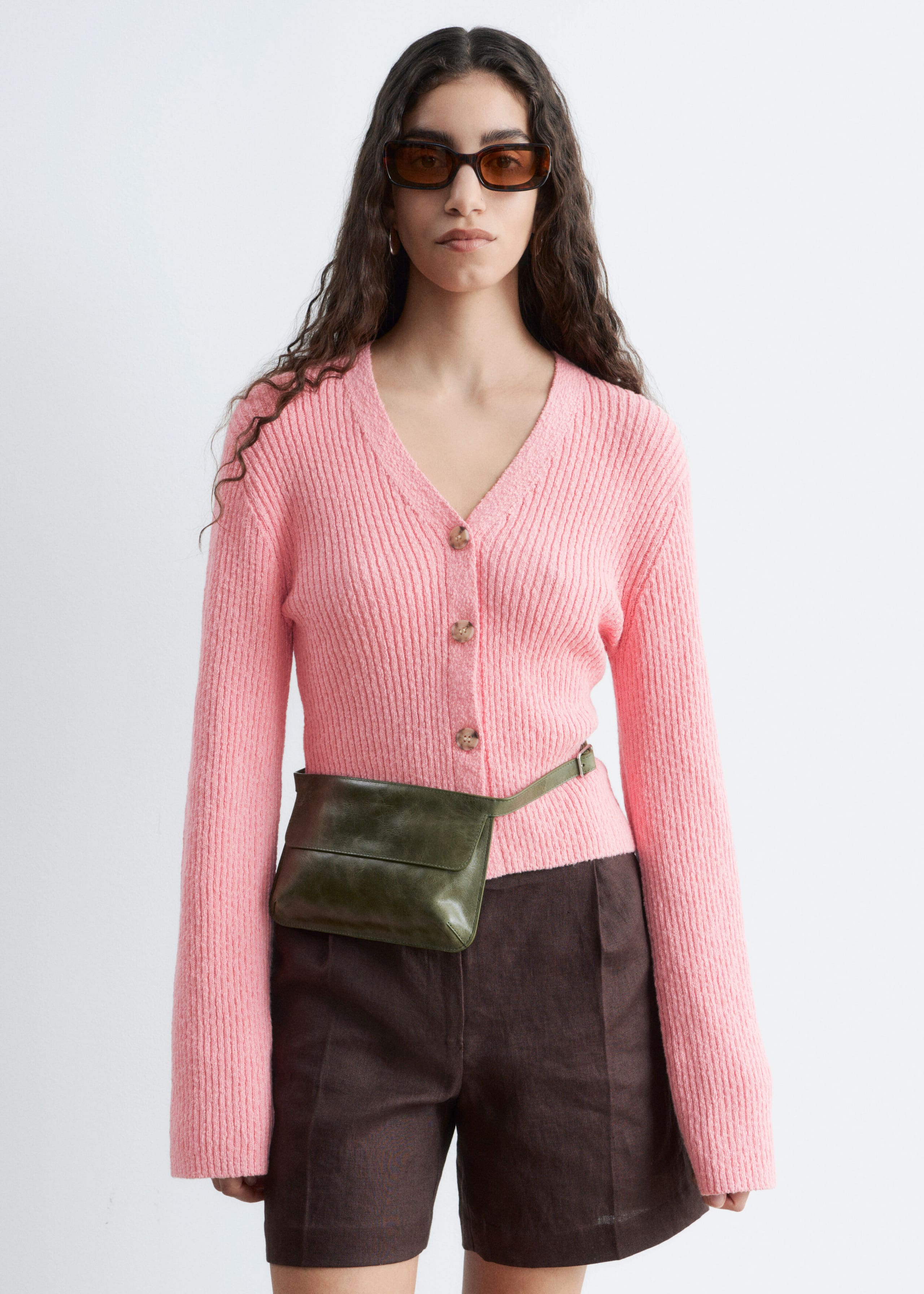 Designed to be shaped by the wearer, this cardigan is rib-knitted from yarn-dyed cotton and features a wrap-effect silhouette that softly defines the waist with a single button. A refined layer that pairs effortlessly with jeans and tailoring alike.
