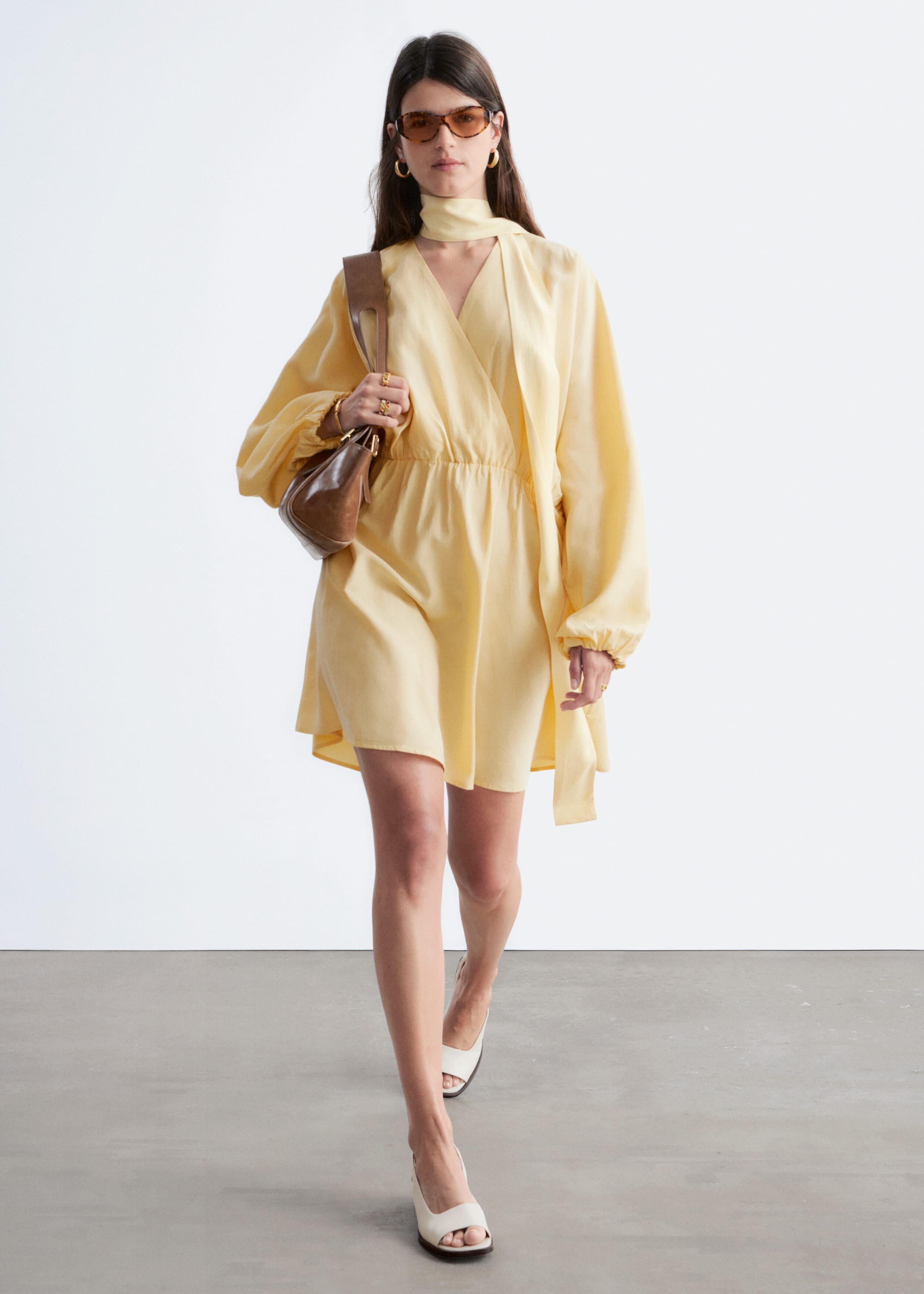 Channeling ‘90s minimalism, this mini slip dress is cut from lustrous satin for a fluid, lightweight feel. It features wide shoulder straps and a scoop neckline and back.