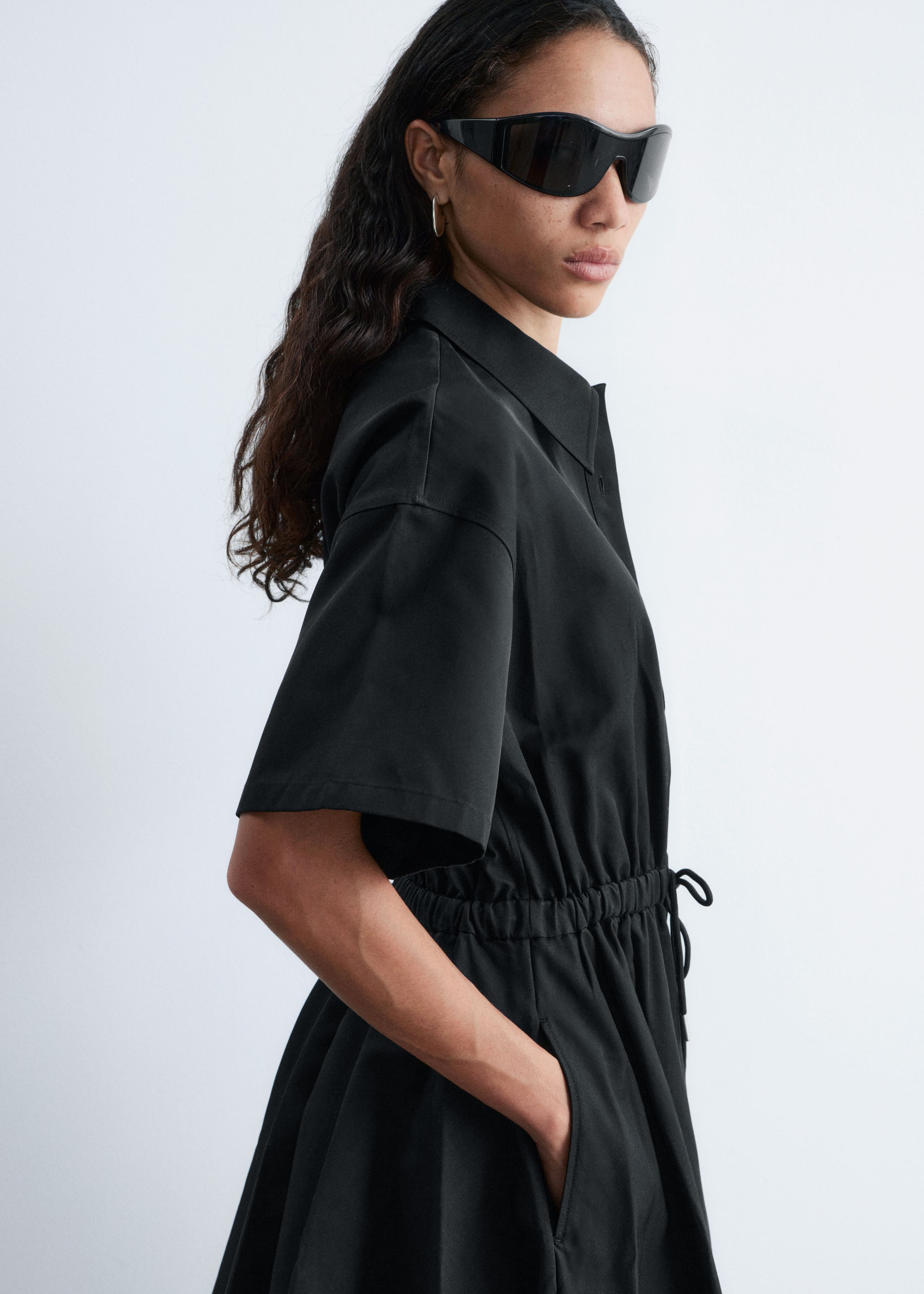 Flared Drawcord Mini Dress