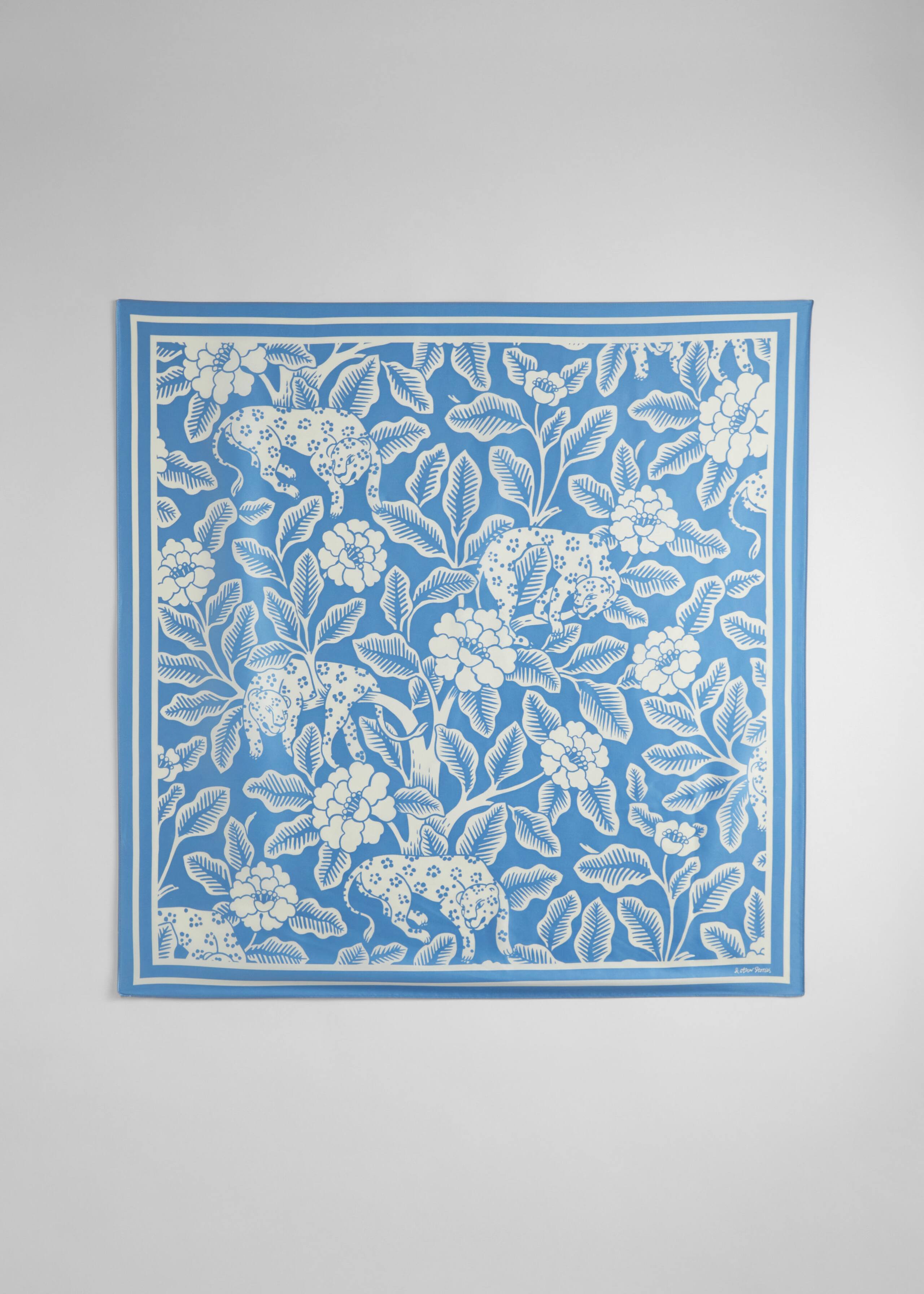 Lightweight scarf decorated with an allover print of florals and leopards.