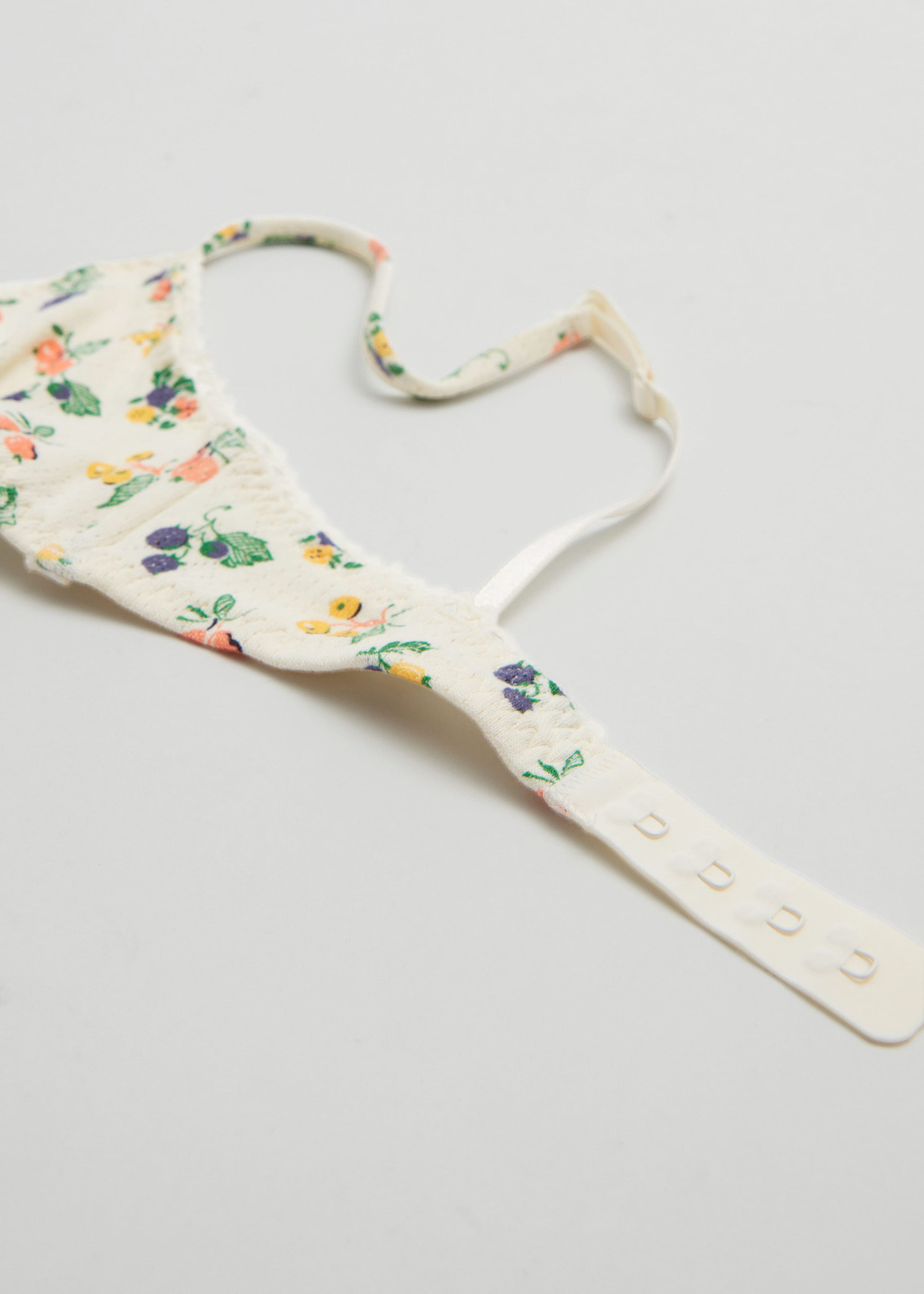 Pointelle cotton soft bra with scalloped trimming and adjustable shoulder straps.