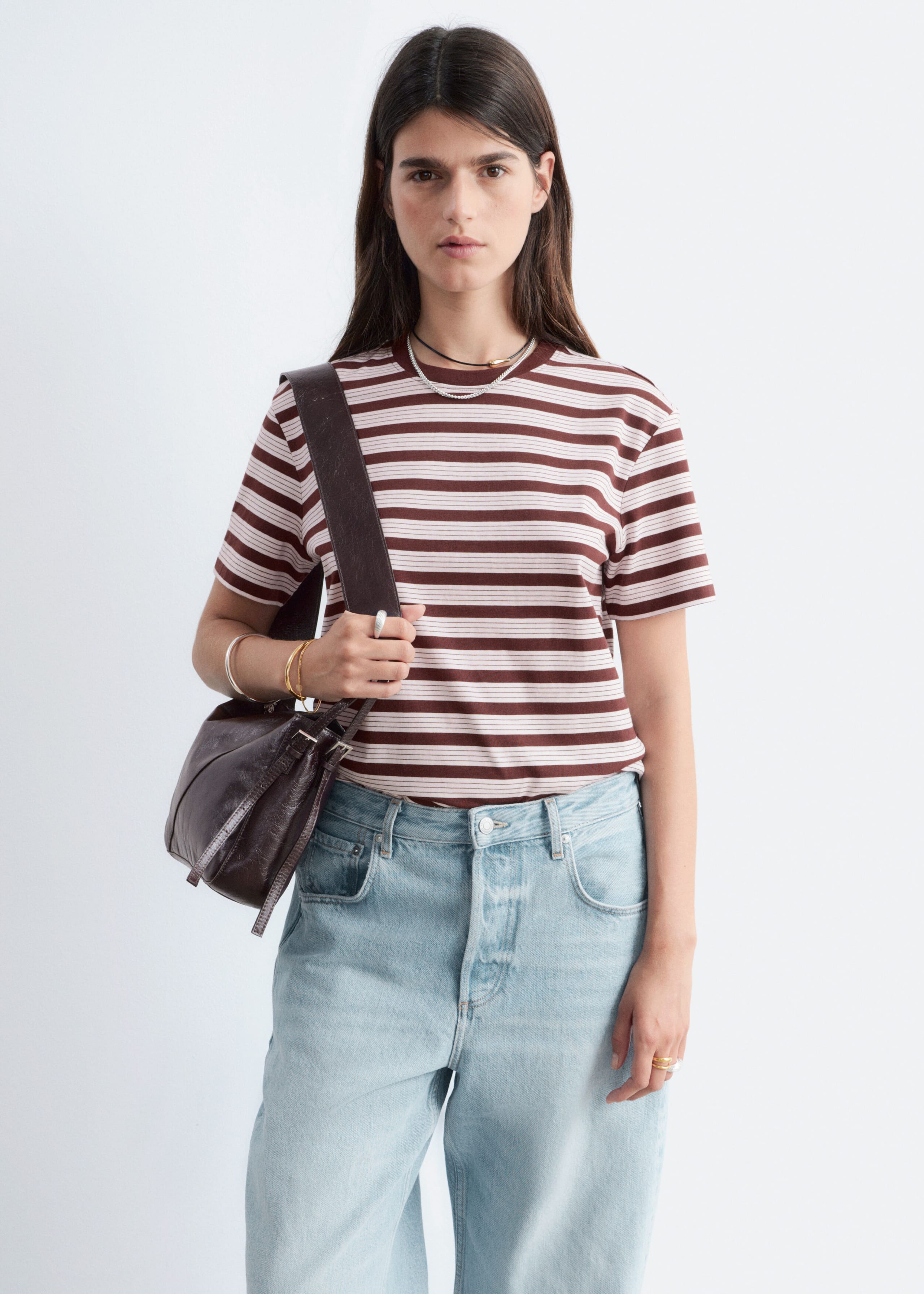 Crafted from supple jersey, this top is cut in a straight silhouette and features a clean mock neckline with short sleeves. Style it with tailoring or classic denim.