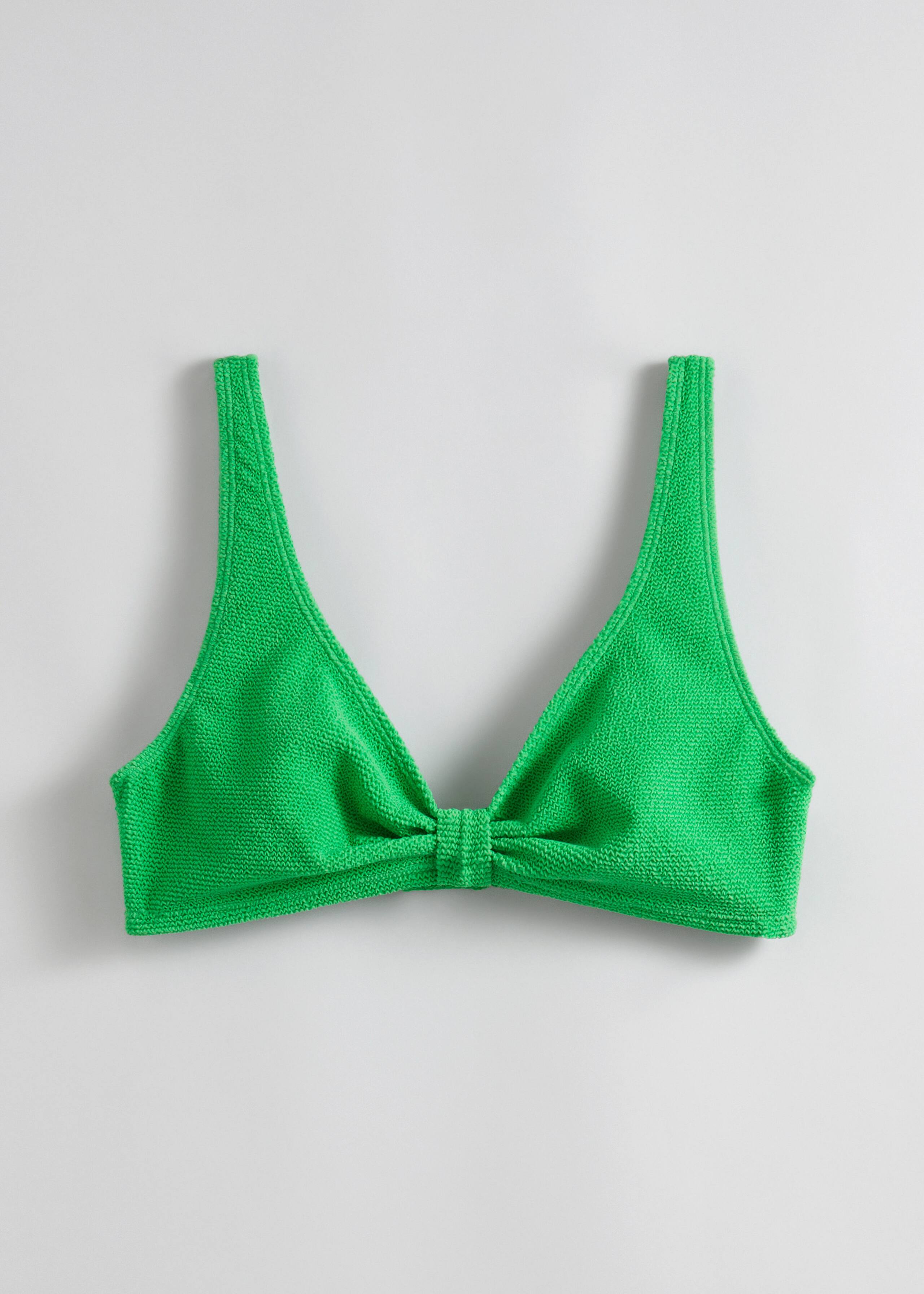 Triangle bikini top featuring a textured, terrycloth-inspired finish.
