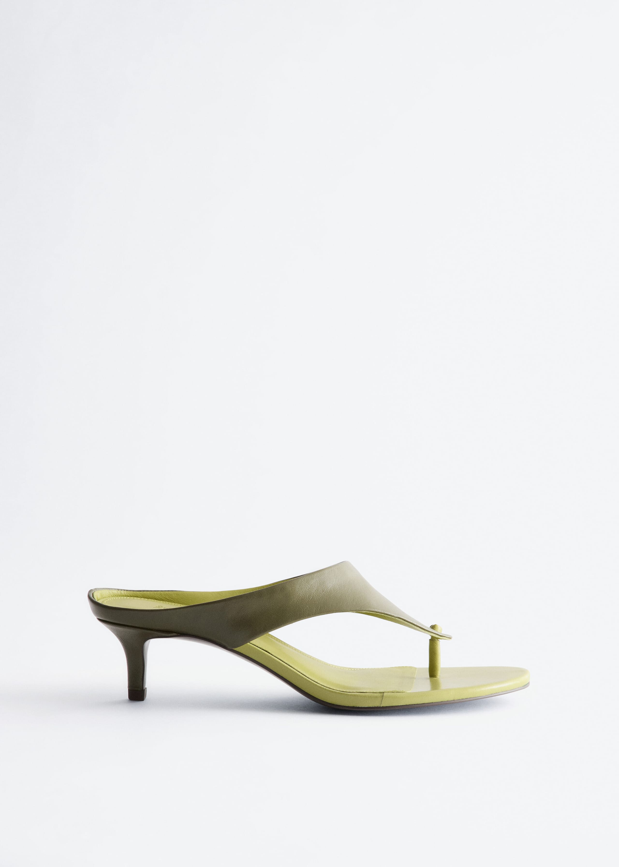Crafted from smooth sheep leather, these heeled sandals have a soft, supple feel. The silhouette is defined by a V-shaped upper with a knotted thong strap and an almond toe, set on a low kitten heel.