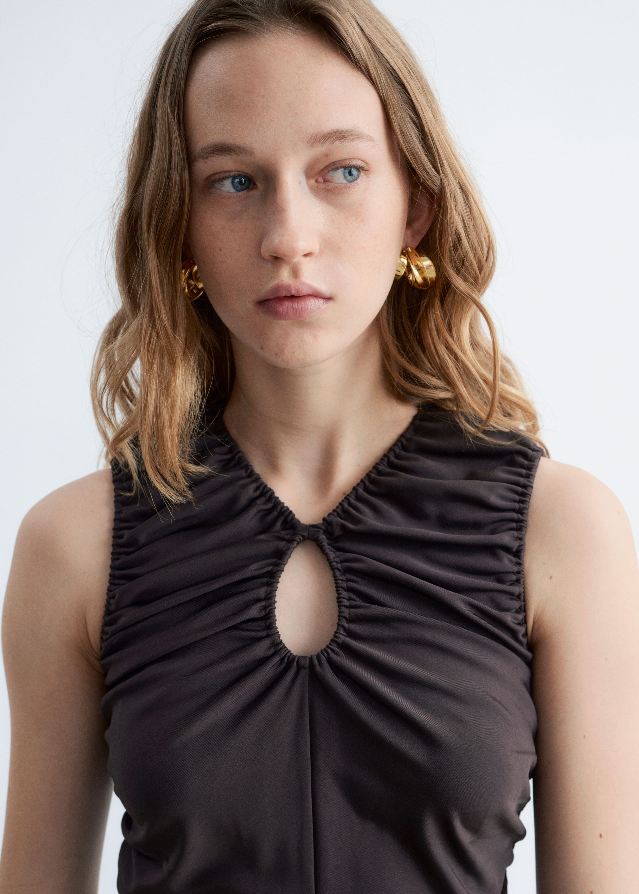 Made from soft, lightweight cotton jersey, this long-sleeve top features a vibrant micro floral pattern. It has a wide neckline and draped ruching across the front.