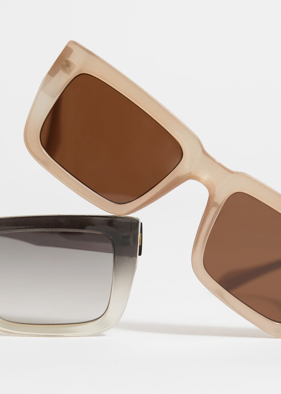 Frame: PCTG 100 % Lens: Polymethyl methacrylate 100 % Temple: Polymethyl methacrylate 66 %, Metal 34 %