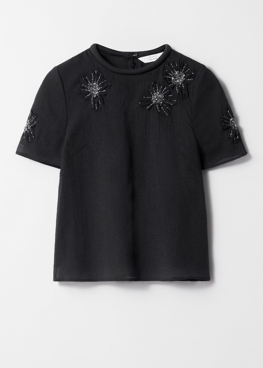 Use a laundry bag, Machine wash 30°C gentle cycle, Do not use chlorine-based bleach, Do not iron on decoration, Low iron, Do not dry clean