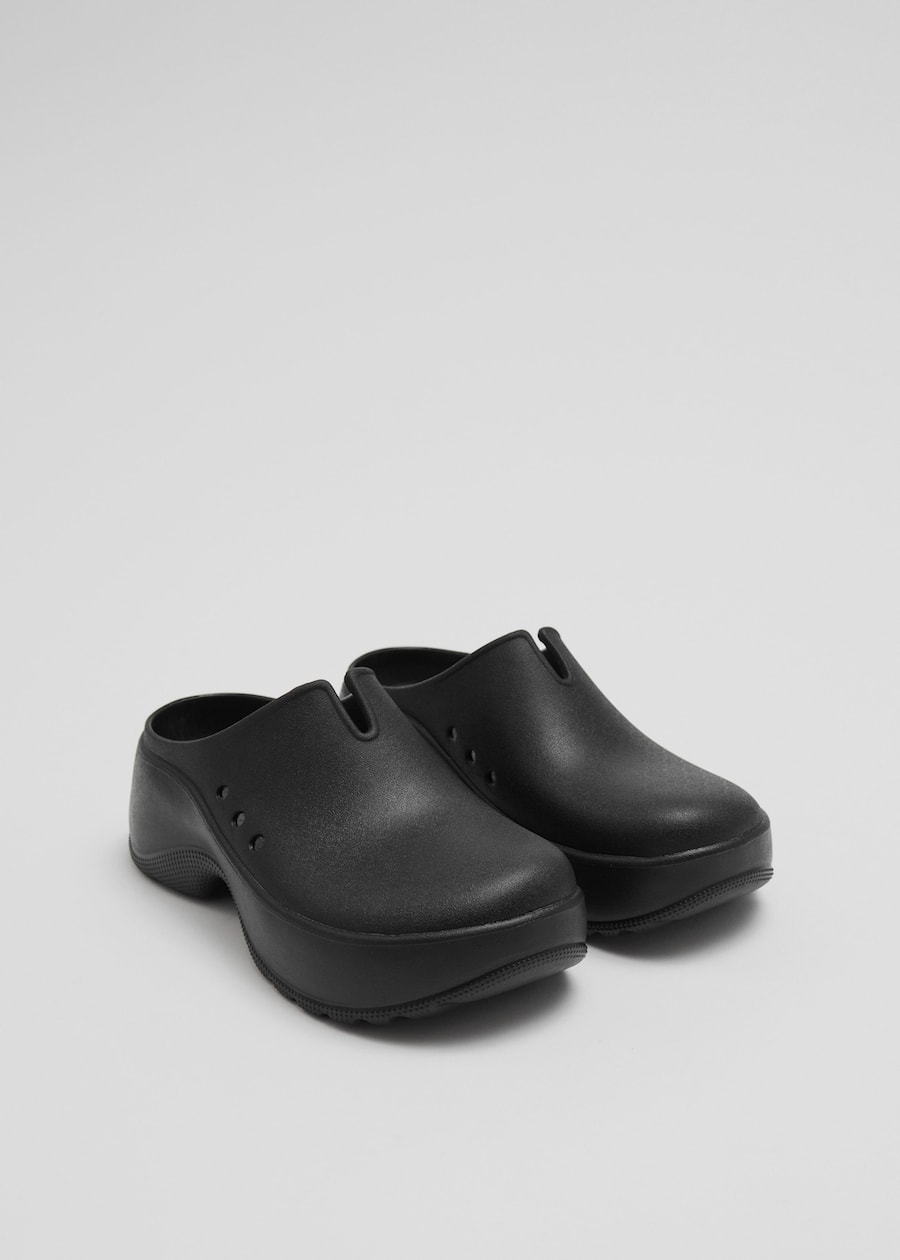 Updates of the classic clog silhouette featuring a chunky rubber construction. Comfortable slip-on design, these sandals are set on ridged soles and are finished with air holes. Crafted in lightweight rubber and acetate.
