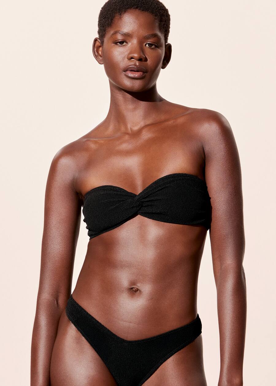 Bikini top featuring a textured finish, and removable straps for an optional bandeau look. Detailed with a centre-front twist.