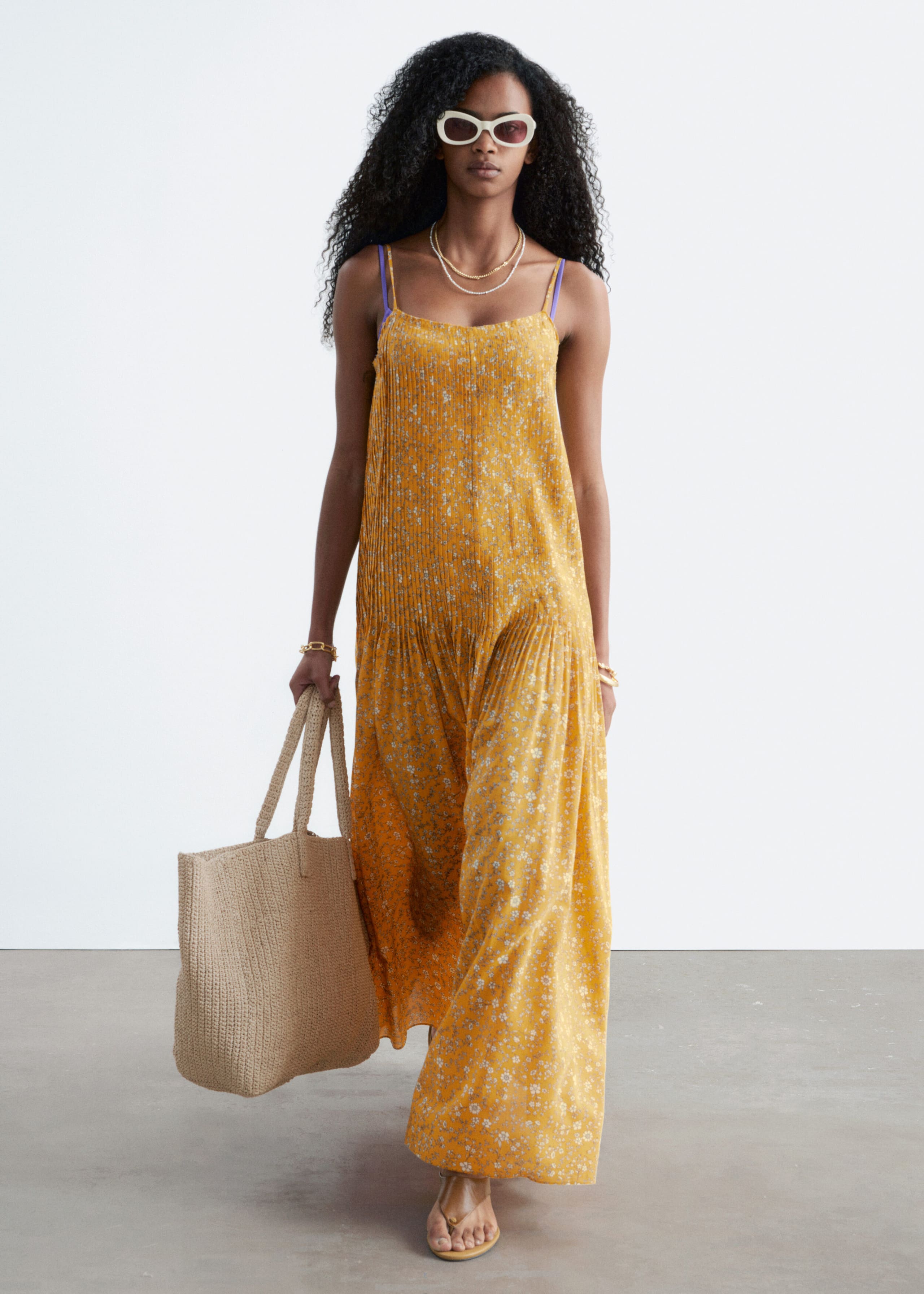 Cut from crisp cotton, this maxi dress is defined by gathered detailing through the neckline, shoulders and waist. The silhouette is shaped with a tie belt and falls with a fluid, elongated line. Finished with a stand collar with a single visible button, concealed front fastening and folded cuffs with buttoned slits.
