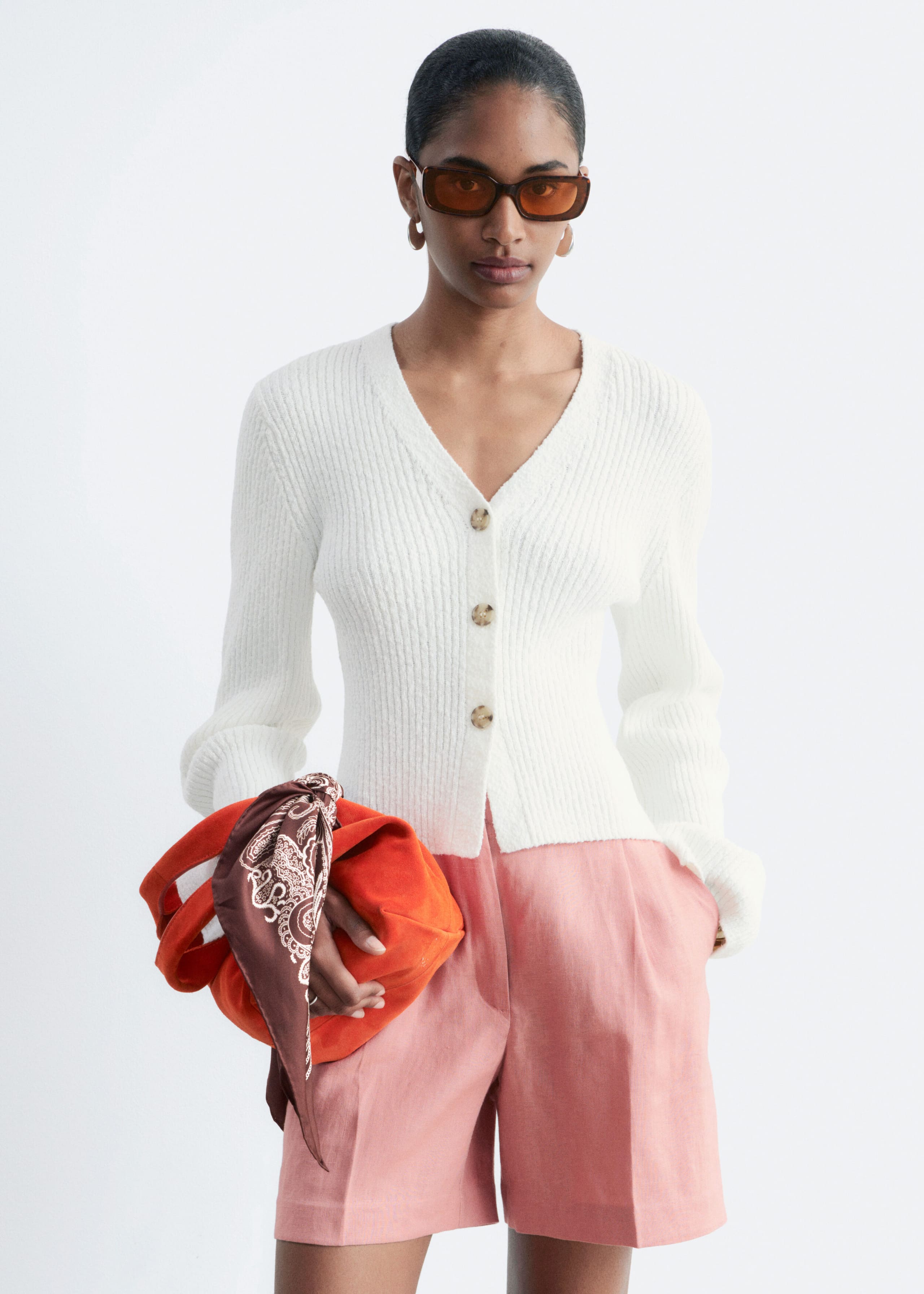 Cárdigan tejido en lana merino con un diseño de doble capa, botones en contraste y ribetes de canalé.