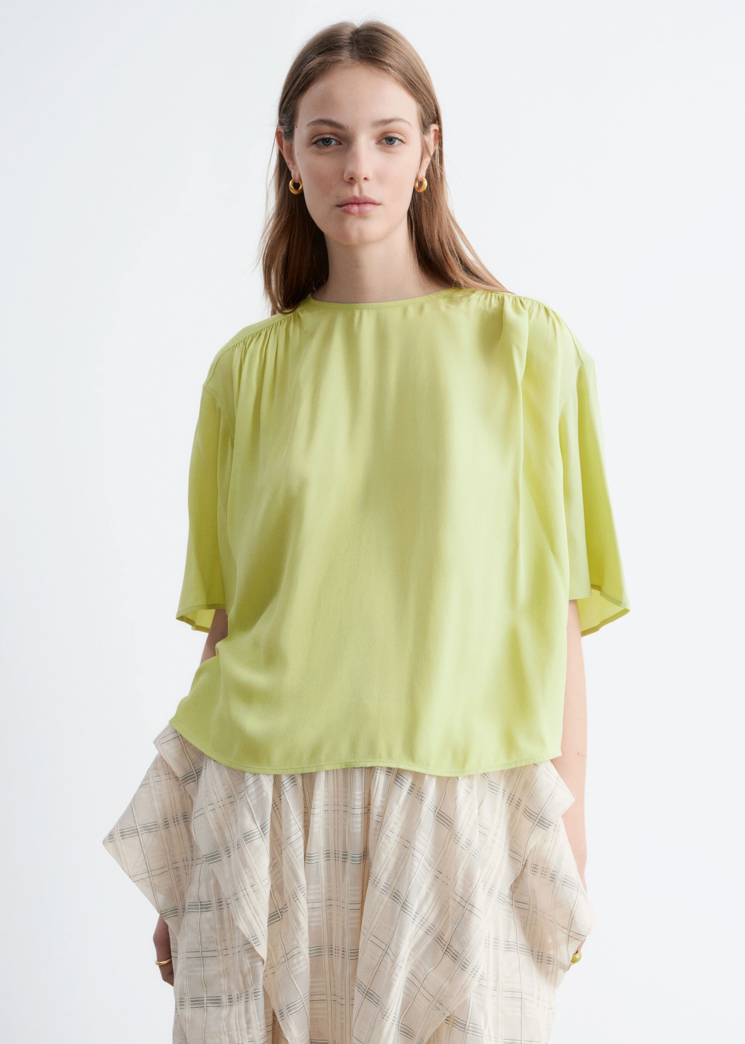 Confectionné en sergé élégant, ce pantalon possède une silhouette barrel décontractée avec des plis à l’avant. Il présente une taille élastique et un cordon de serrage ajustable pour plus de flexibilité. Par ailleurs, il possède des coutures surpiquées, tandis que ses ourlets à cordon de serrage élastique permettent d’apporter du volume.