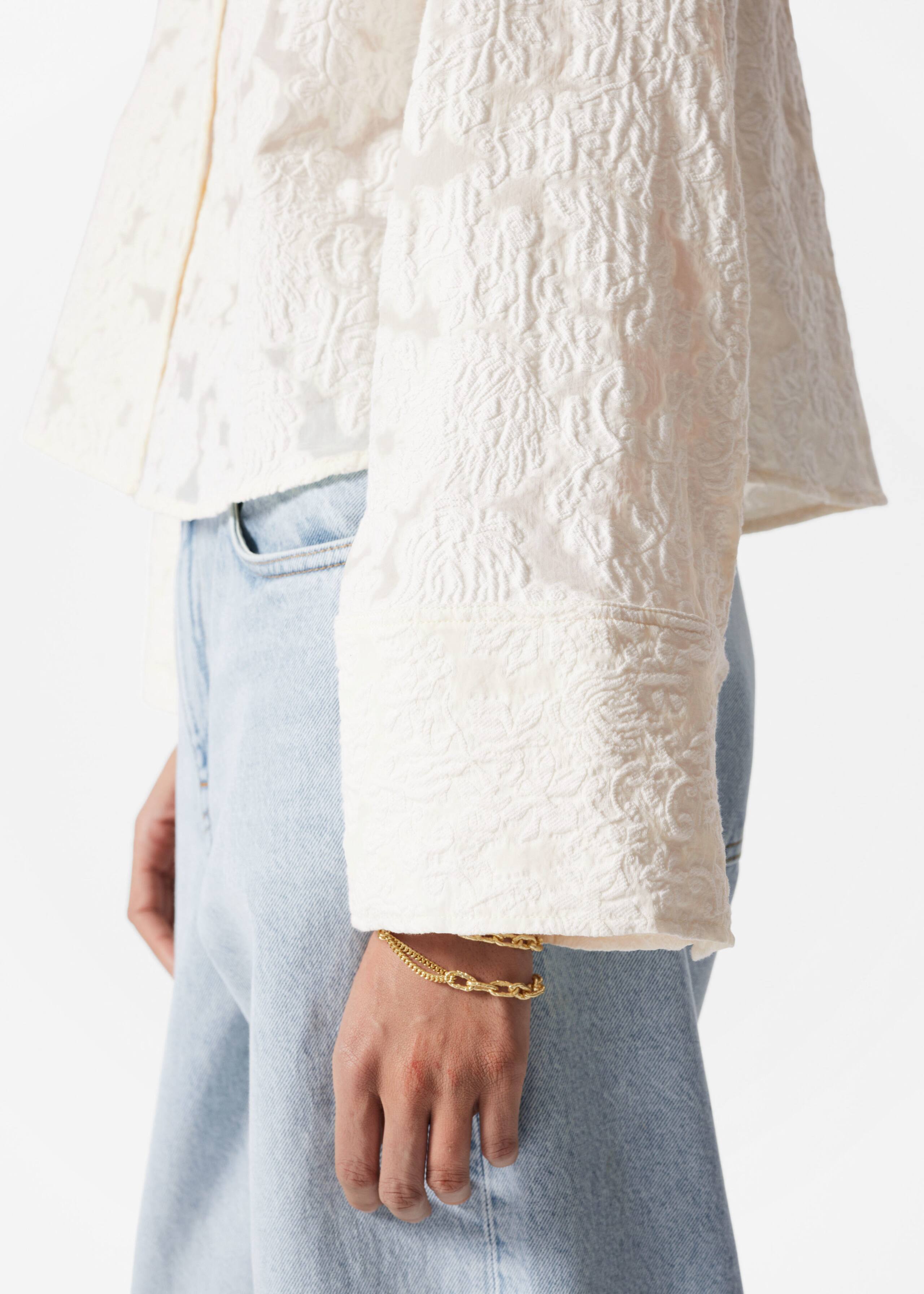 Confectionné à partir d’un mélange luxueux de laine et de coton, ce polo à manches courtes en crochet complexe présente un imprimé cachemire avec un effet transparent. Doté d’une fermeture à 3 boutons devant.