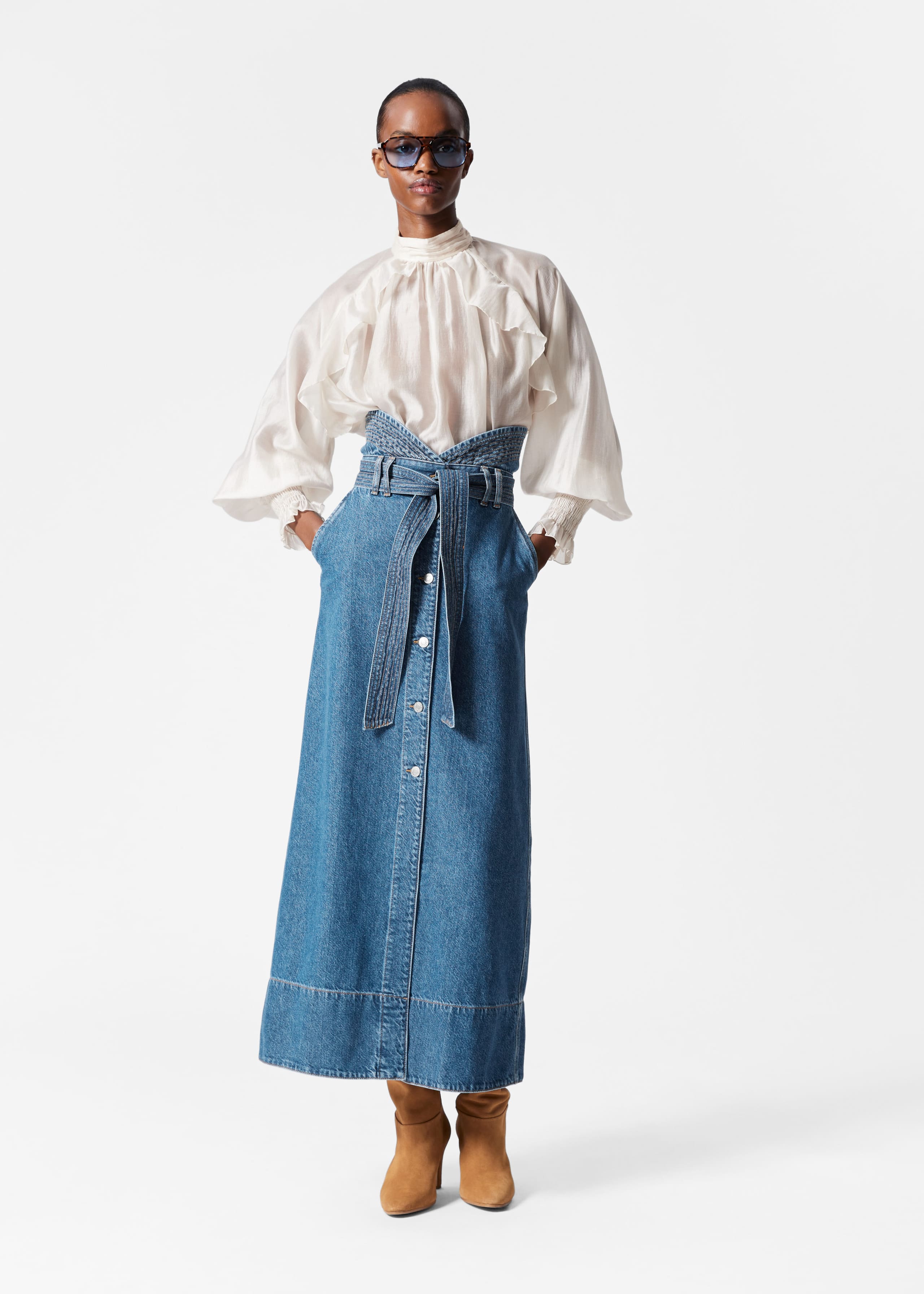 Jupe midi texturée à l’ourlet côtelé légèrement évasé. Dotée d’une taille élastique.