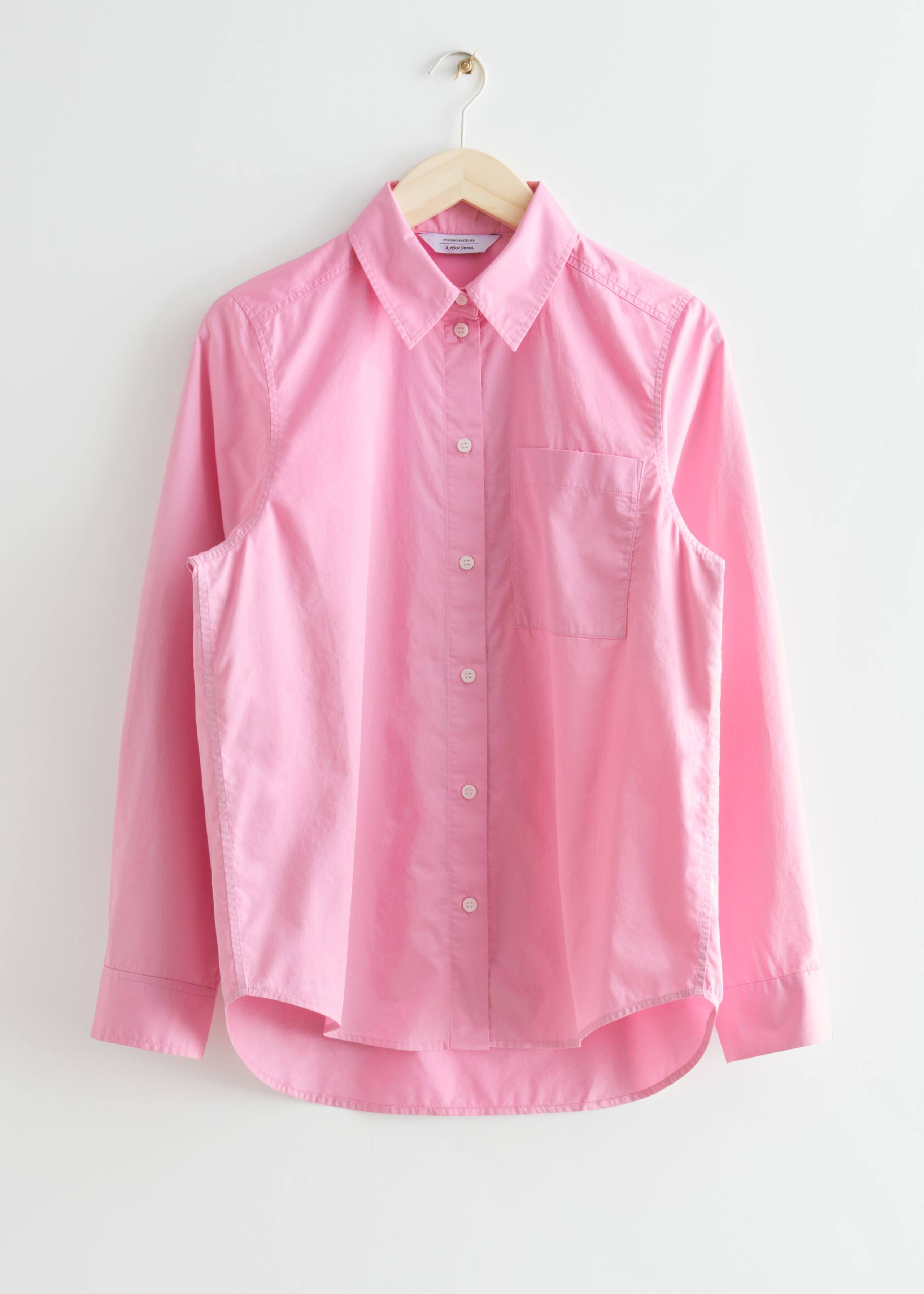 Crisp cotton shirt finished a collar and buttoned cuffs.