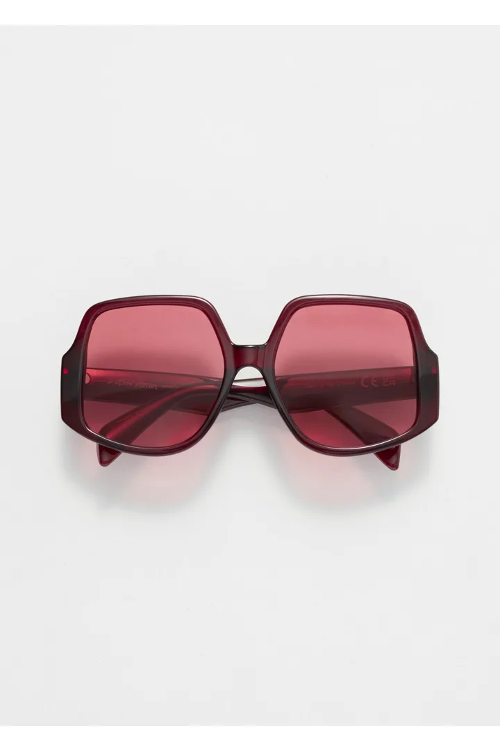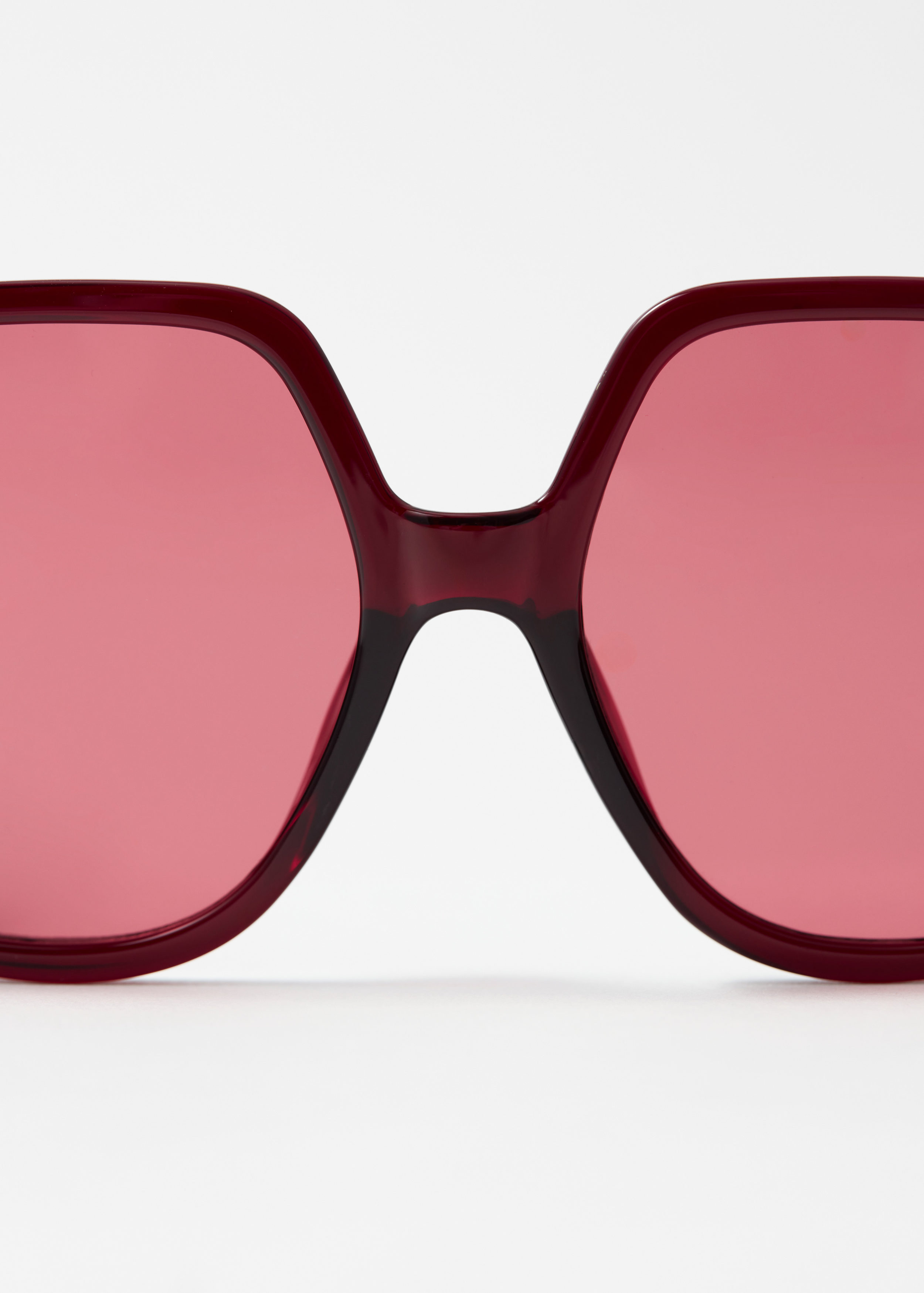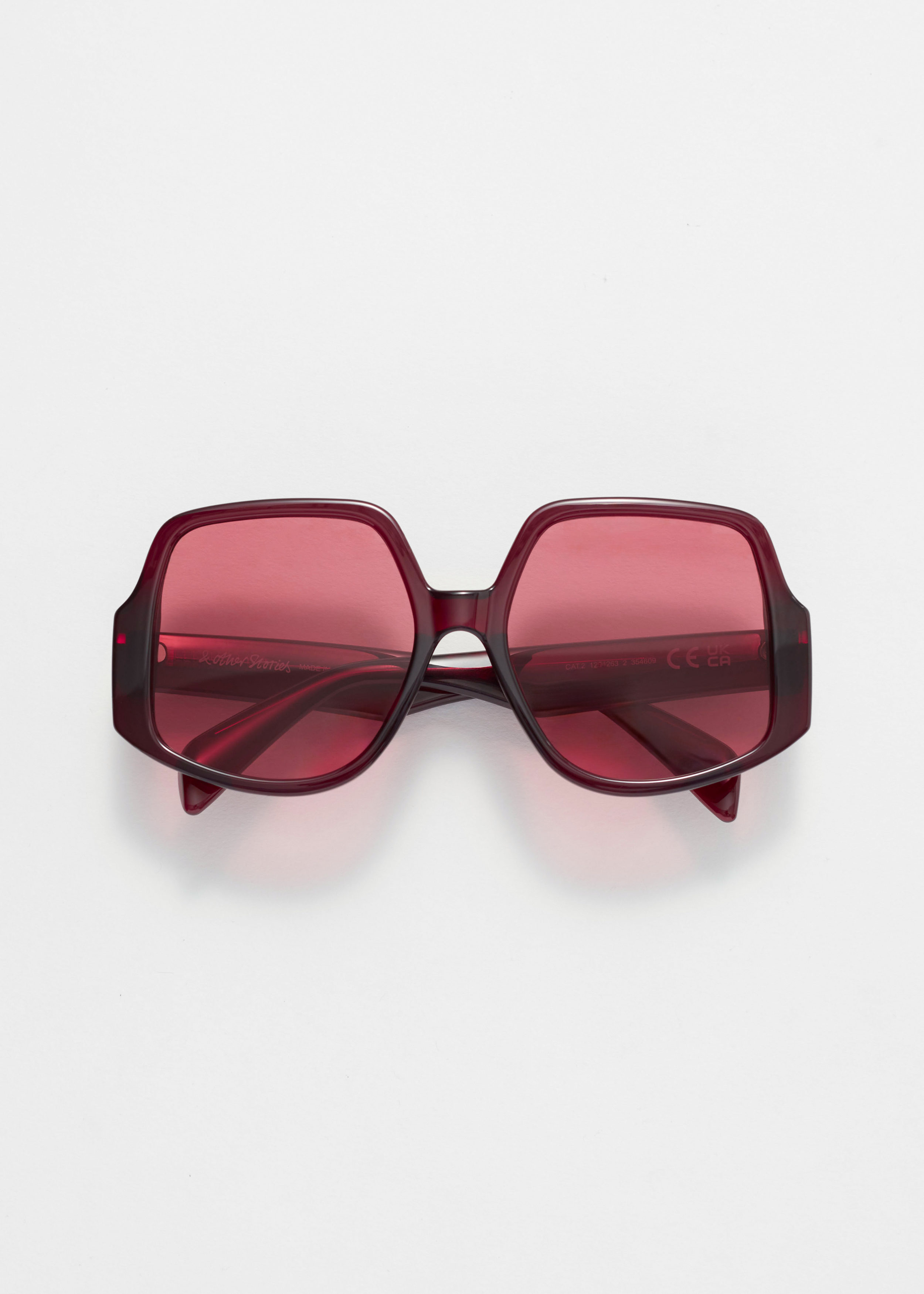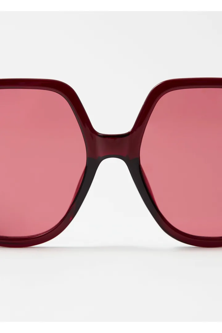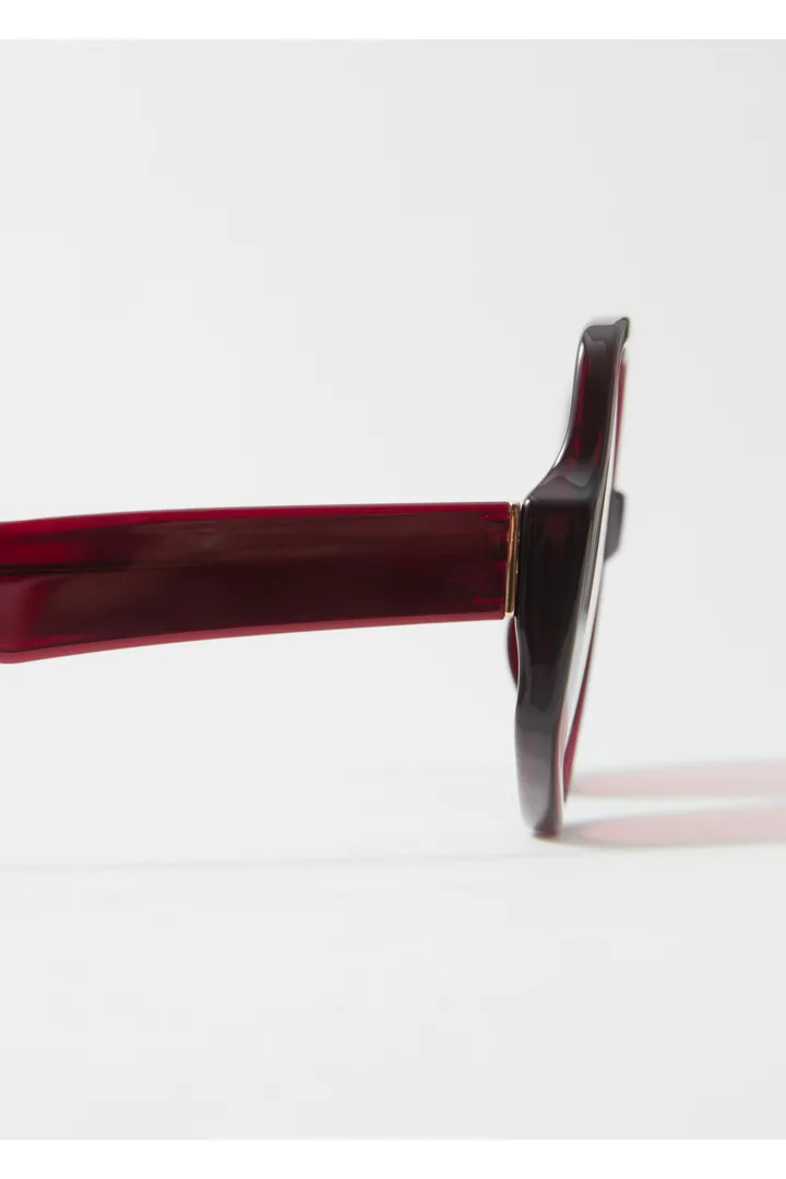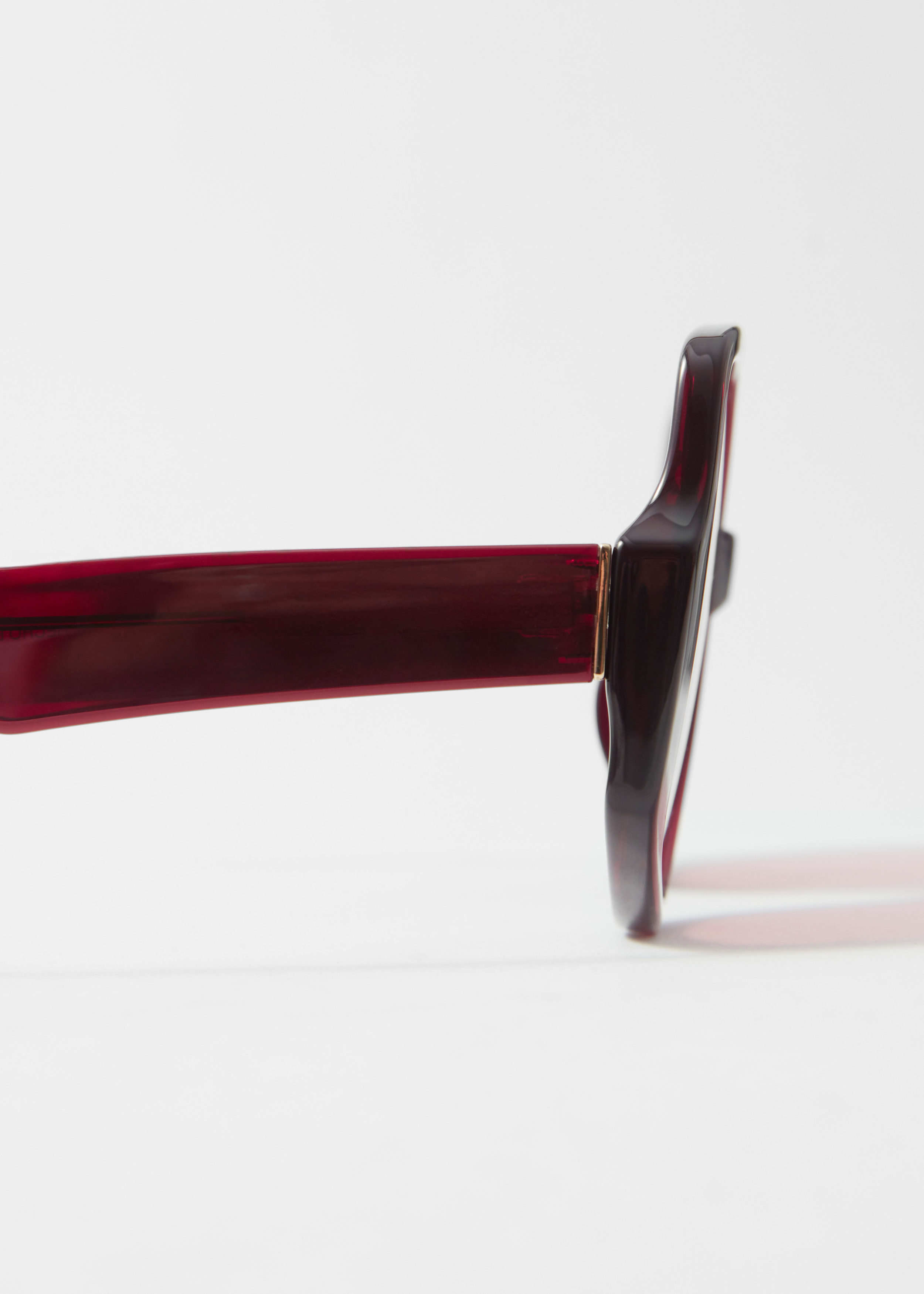 타임리스하고 우아한 디자인을 대담한 감각으로 재해석한 오버사이즈 선글라스예요. 라운드 쉐입과 각진 테두리가 조화롭게 어우러진 스퀘어 프레임과 토널 컬러의 렌즈가 특징이며, 낮게 자리한 와이드 템플이 볼드한 실루엣을 더욱 돋보이게 한답니다.