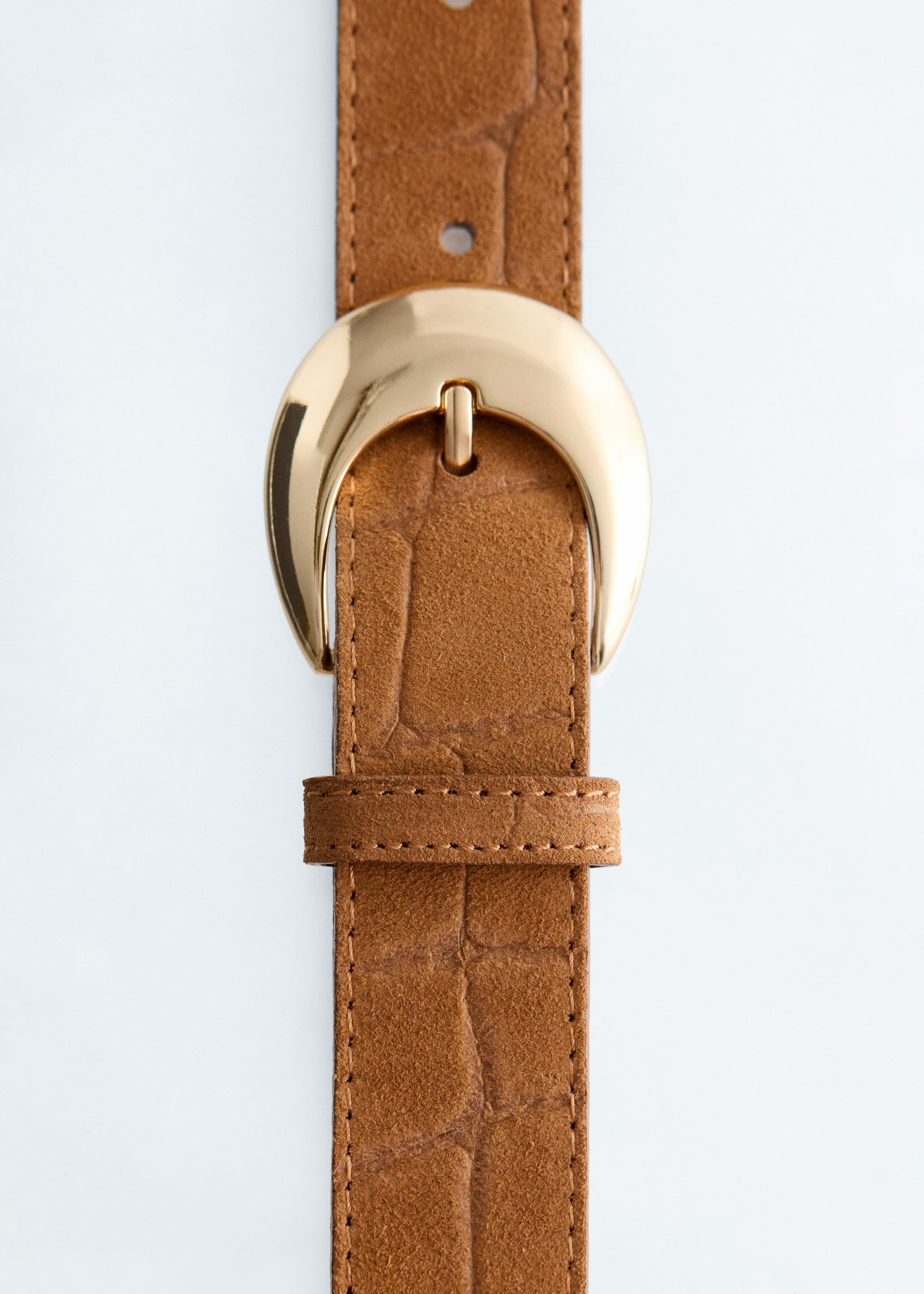 독특한 쉐입의 골드 톤 버클이 절제된 무드를 연출하는 벨트예요. 이탈리아에서 유연한 가죽으로 제작되었으며, 테일러드 옷의 고리에 끼워 연출하거나 블레이저를 조여 스타일링해도 멋스럽답니다.