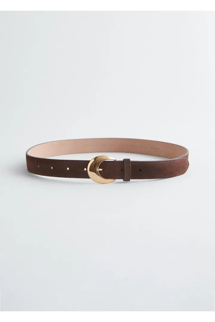 독특한 쉐입의 골드 톤 버클이 절제된 무드를 연출하는 벨트예요. 이탈리아에서 유연한 가죽으로 제작되었으며, 테일러드 옷의 고리에 끼워 연출하거나 블레이저를 조여 스타일링해도 멋스럽답니다.