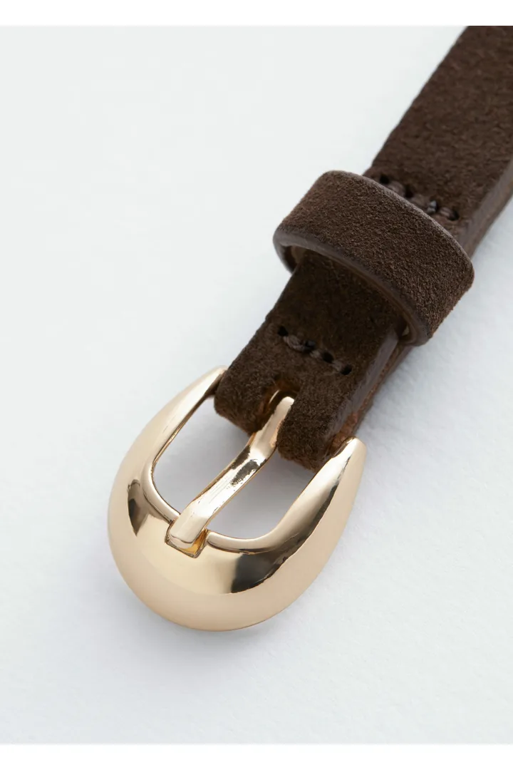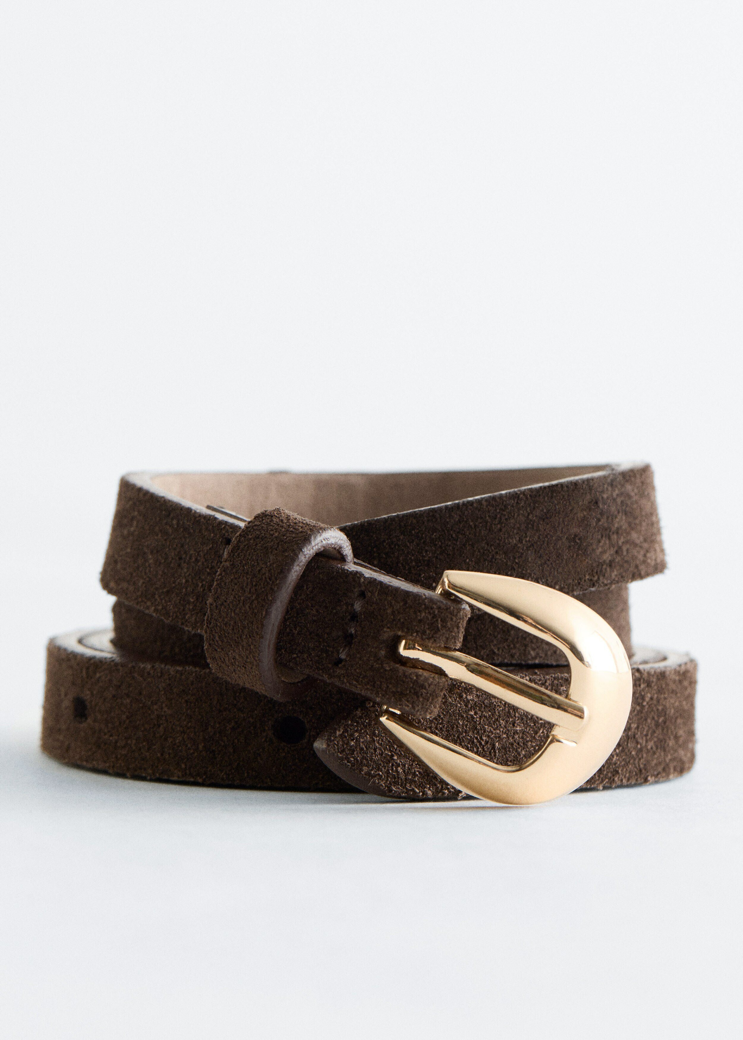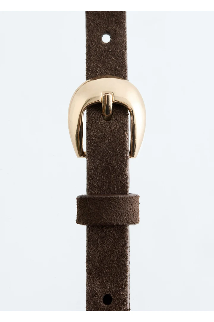 독특한 쉐입의 골드 톤 버클이 절제된 엣지를 더하는 슬림 벨트예요. 이탈리아에서 유연한 가죽으로 제작되었으며, 데님 진 또는 블레이저에 연출하면 멋스럽답니다.