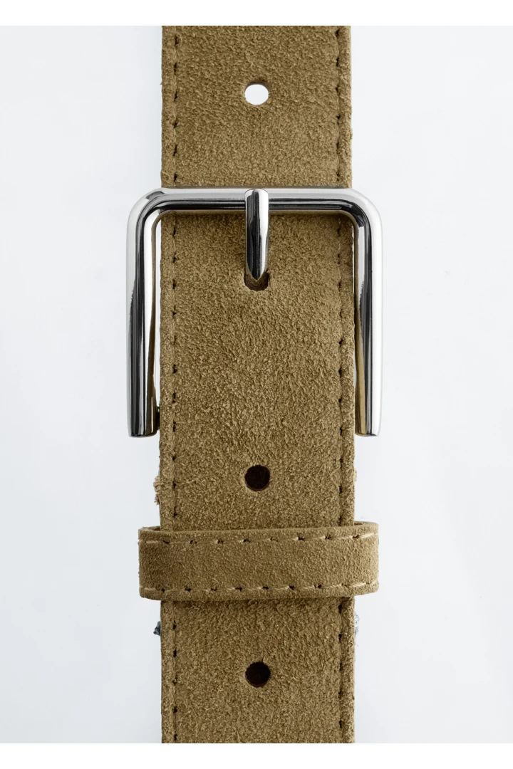 이탈리아에서 부드러운 가죽 소재로 제작된 세련된 벨트예요. 클래식한 스퀘어 버클과 사선의 팁이 특징이에요.