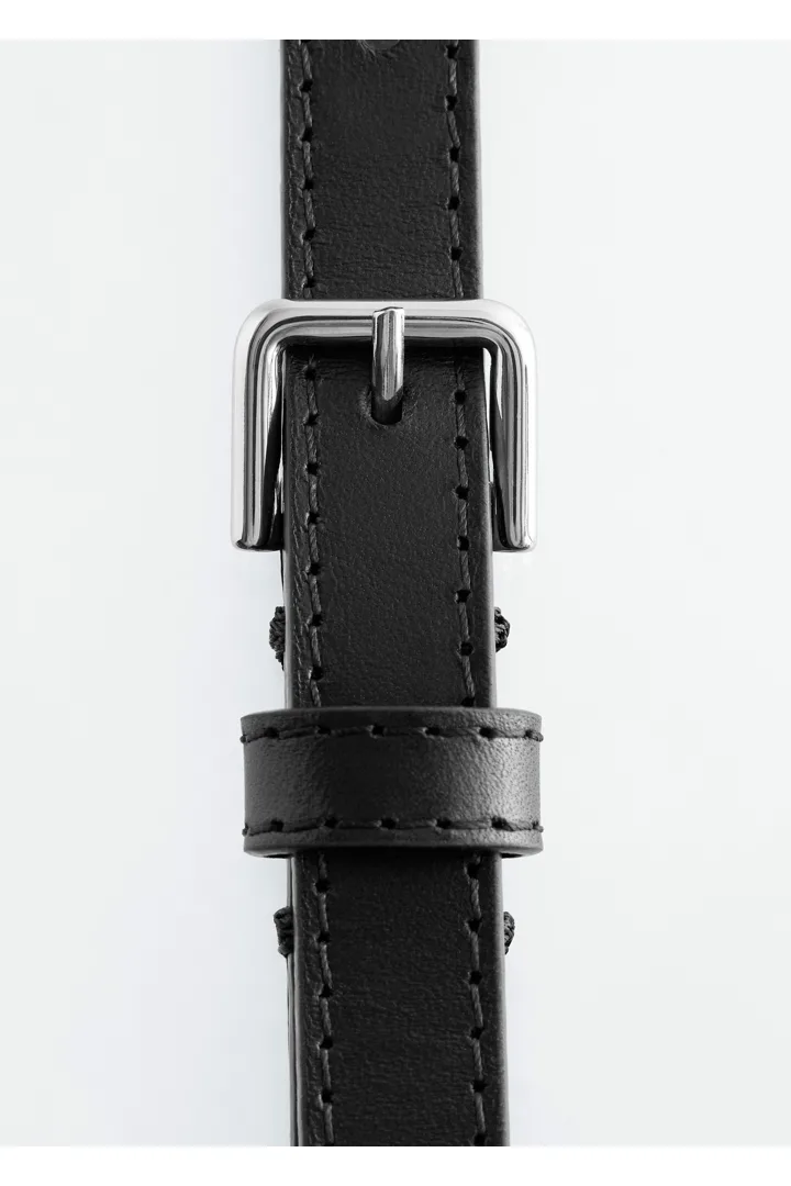 이탈리아에서 부드러운 가죽 소재로 제작된 세련된 벨트예요. 클래식한 스퀘어 버클과 사선의 팁이 특징이에요.