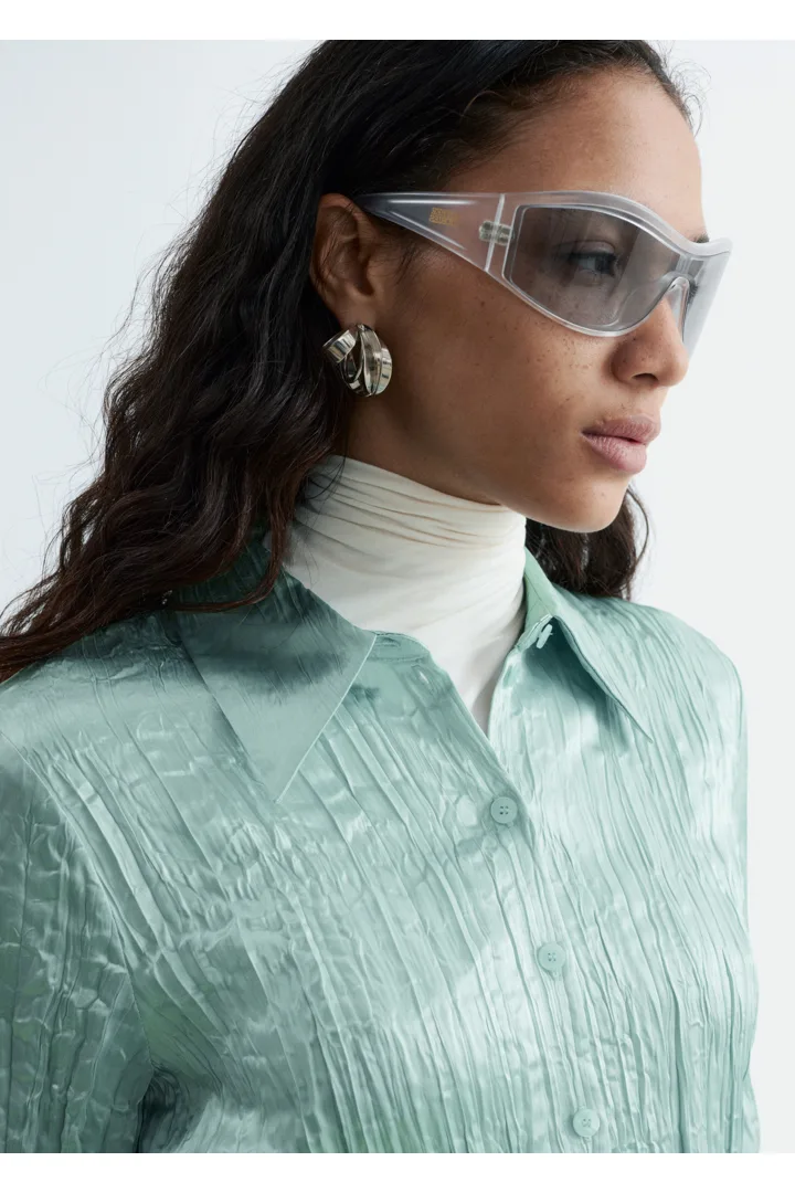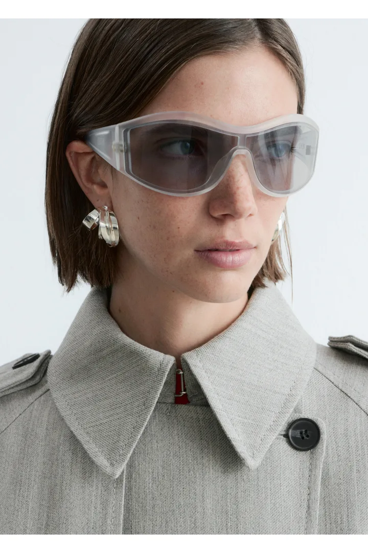대담하고 활용도 높은 오버사이즈 선글라스예요. 부드러운 무드의 둥근 프레임, 쉐이드 렌즈, 그리고 와이드 템플이 특징이랍니다. 하루 종일 편안하게 착용할 수 있으며, 강렬한 분위기를 연출해 주어요.