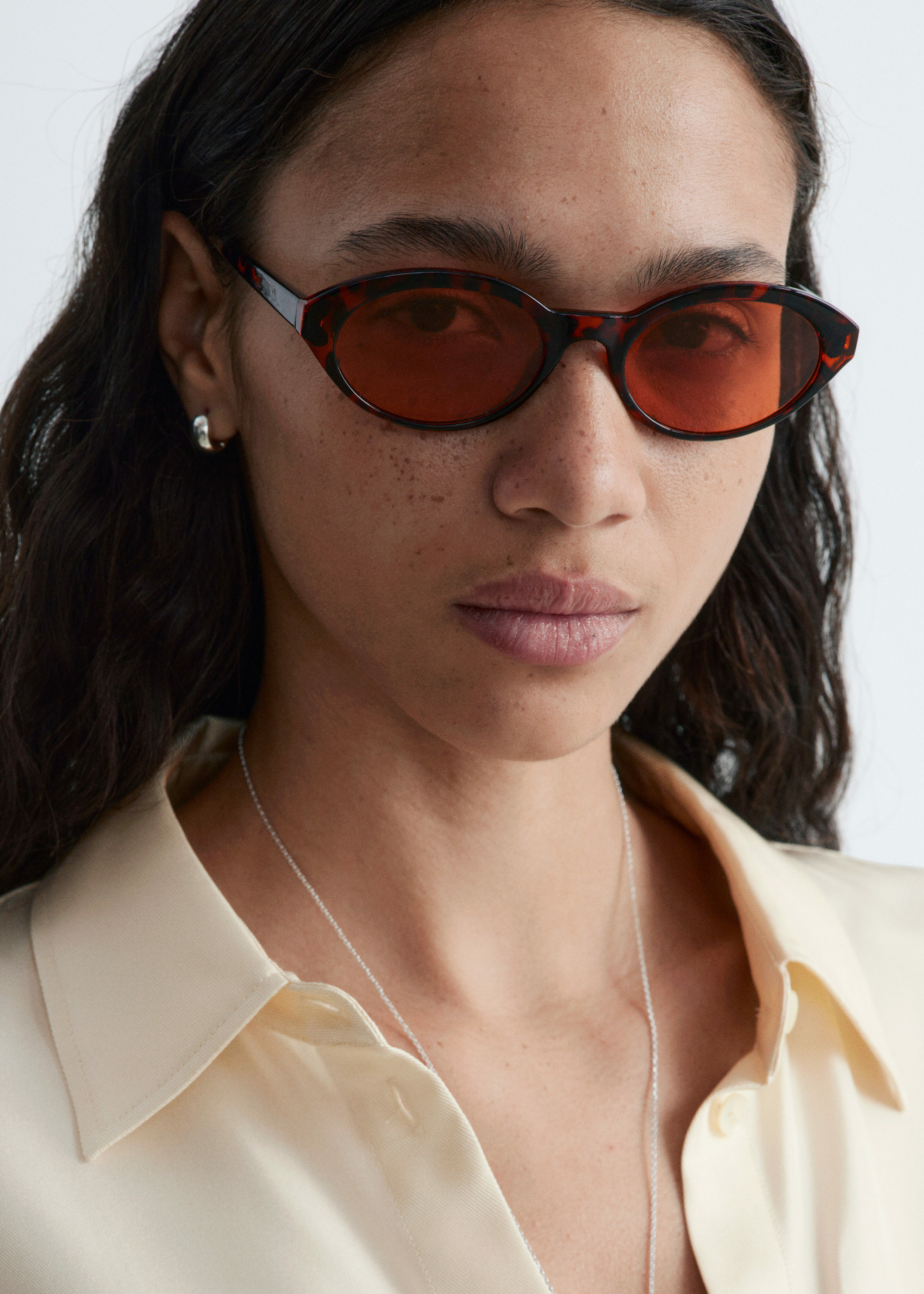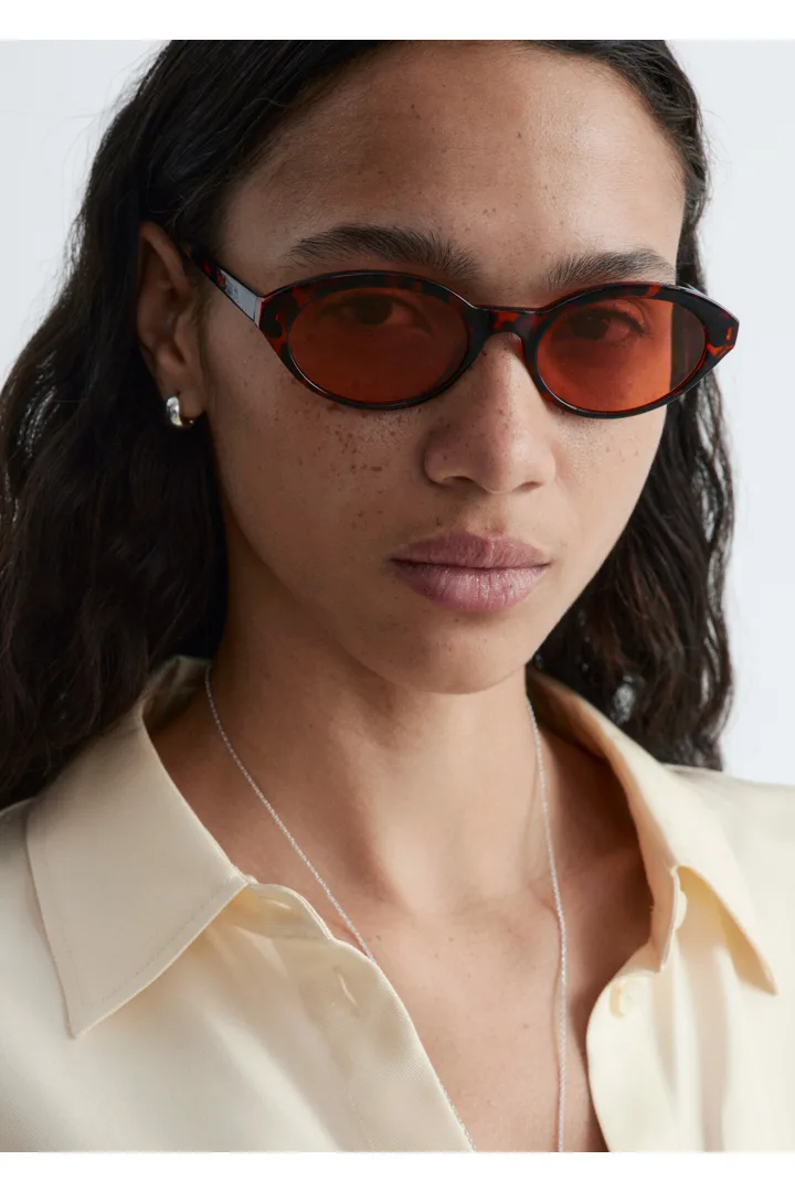 쁘띠뜨 쉐입의 타원형 프레임이 멋스러운 클래식 선글라스예요. 견고한 유광 소재로 제작되었답니다. 슬림한 템플로 편안한 핏을 선사하며, 쉐이드 렌즈가 자리해 있어요.