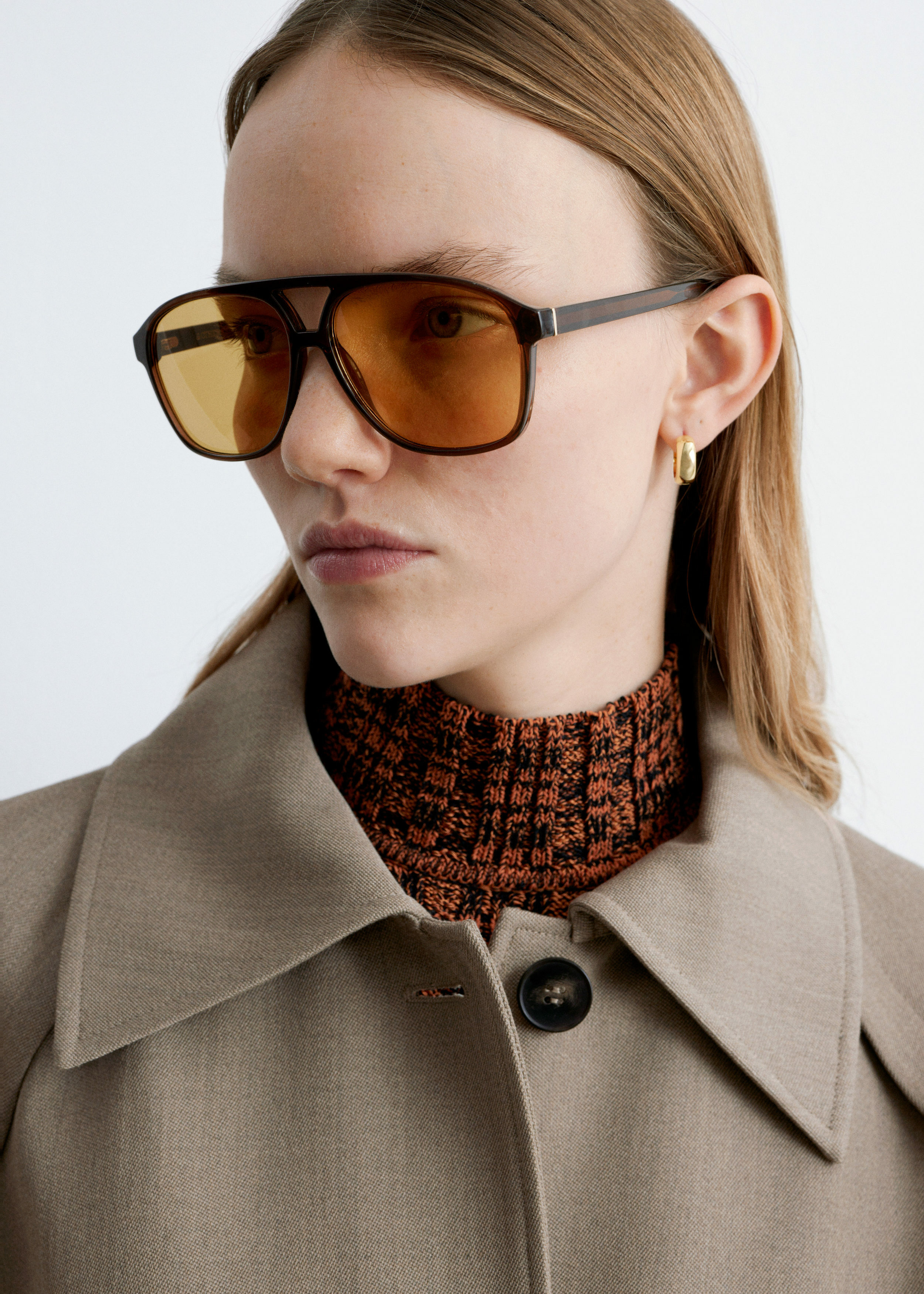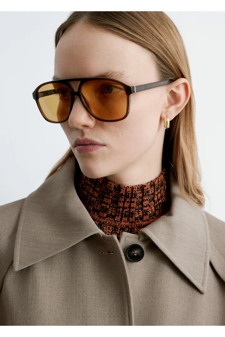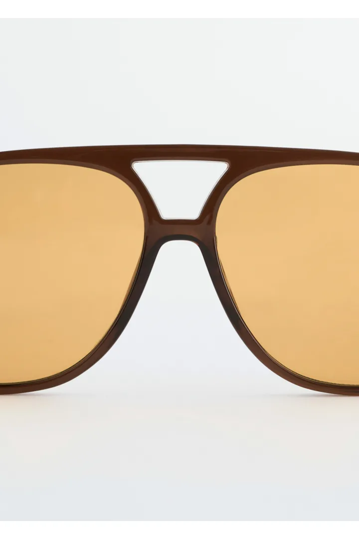 1980년대 감성을 오마주하여 탄생한 애비에이터 스타일의 오버사이즈 선글라스예요. 둥근 프레임, 클래식한 브로우 바, 슬림한 템플, 쉐이드 렌즈가 자리해 있답니다.