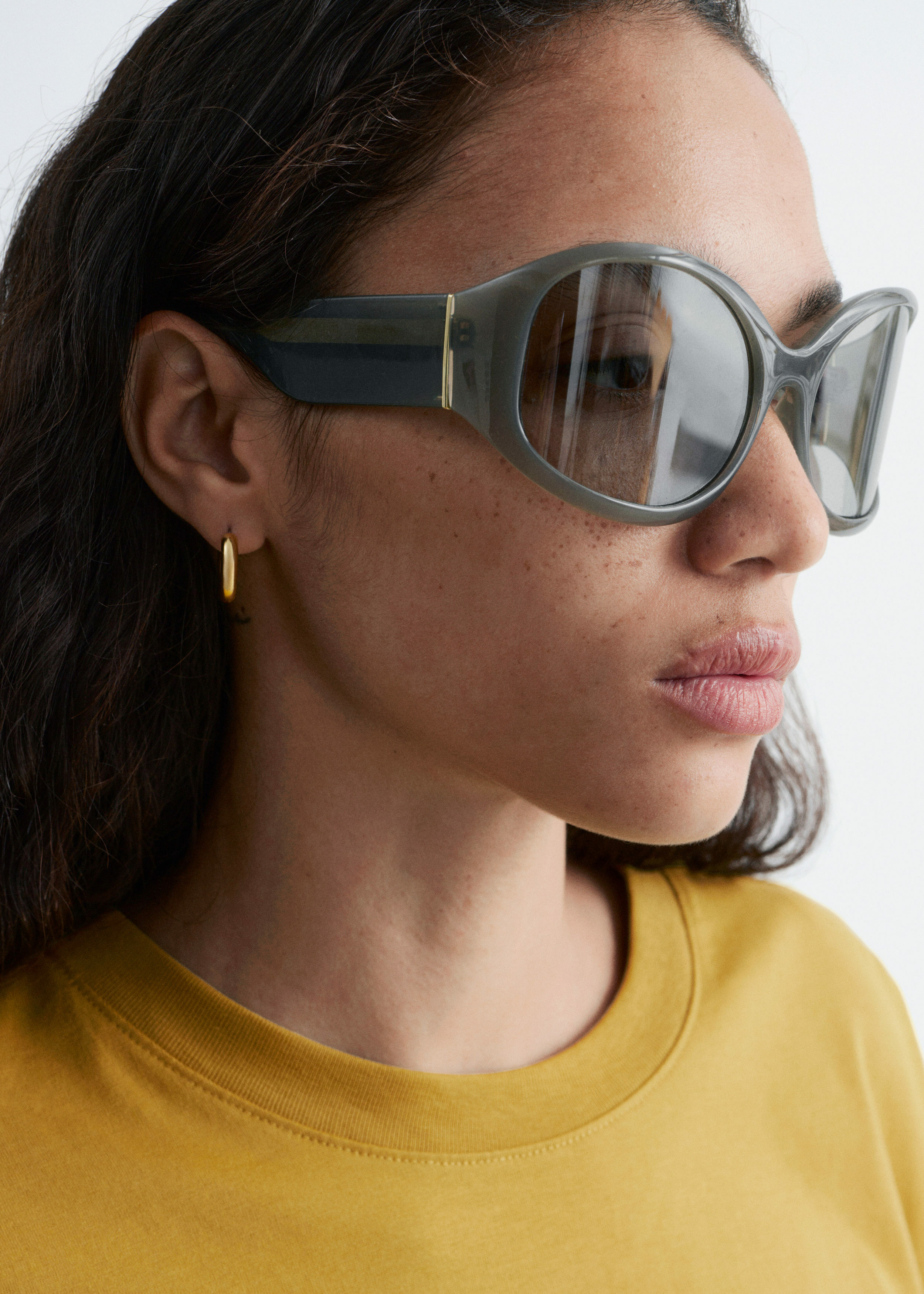 볼드한 무드와 활용성이 특징인 오버사이즈 스퀘어 선글라스예요. 부드러운 라운드 프레임, 쉐이드 렌즈, 너비감 있는 템플이 특징이에요. 하루 중 언제든 착용하기 좋으며, 개성 있는 스타일로 연출하기에도 좋답니다.