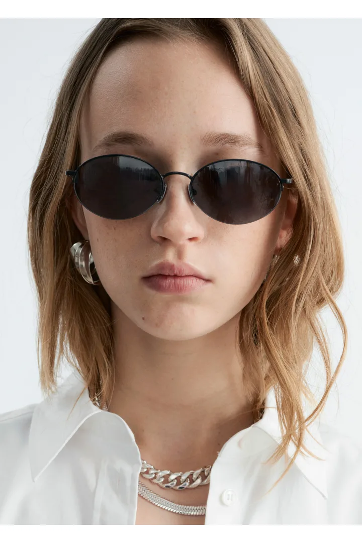 90년대 미니멀리즘에서 영감을 받은 와이어 프레임 선글라스예요. 라운드 렌즈와 얇은 스틸 템플, 그리고 최적의 편안한 핏을 제공하는 노즈 패드가 특징이랍니다.