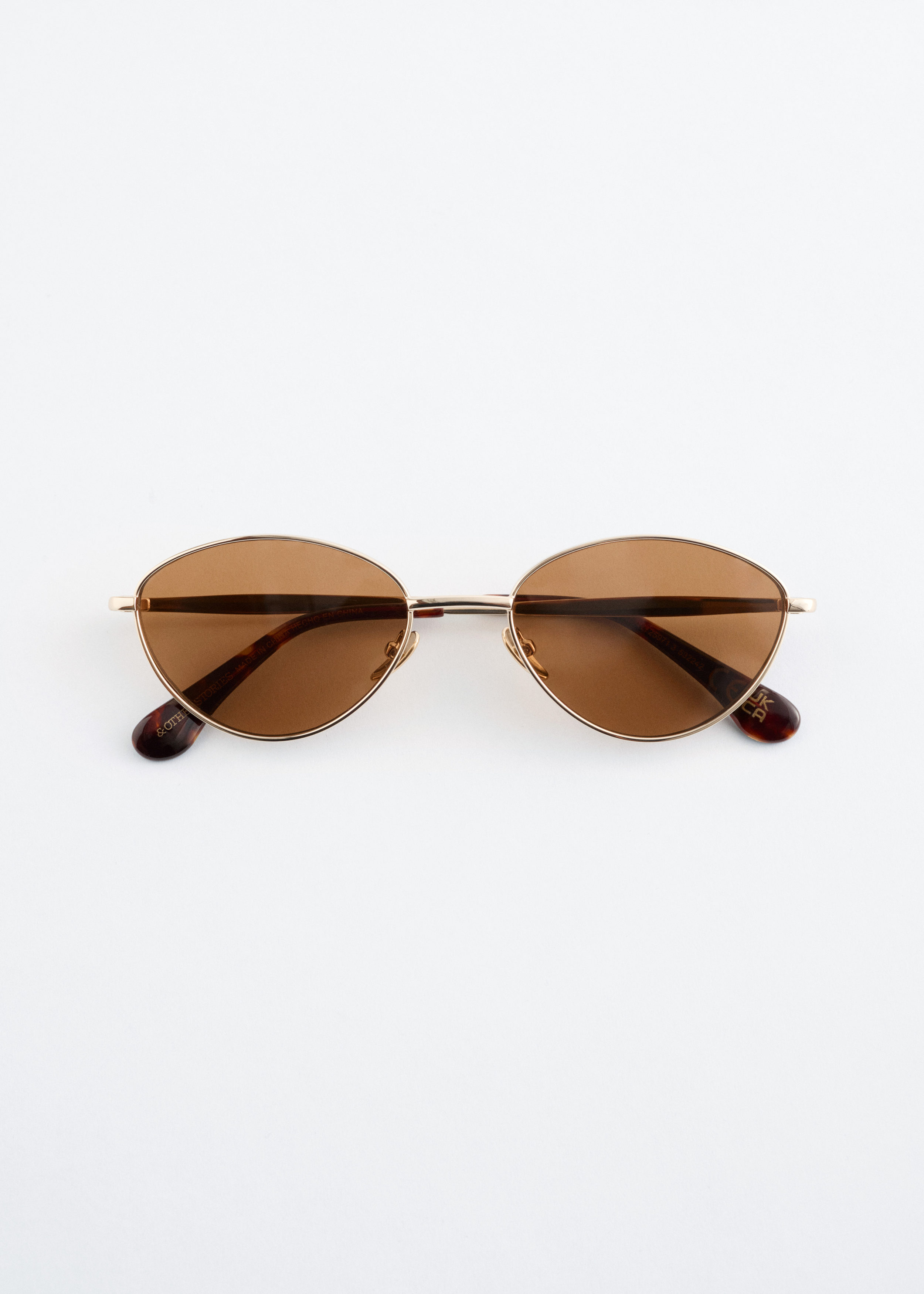 90년대 미니멀리즘을 오마주하여 탄생한 와이어 프레임 선글라스예요. 양쪽 측면부로 갈수록 슬림해지는 타원형 렌즈가 날렵한 룩을 연출한답니다. 얇은 스틸 템플과 최적으로 핏되는 노즈 패드로 편안한 핏을 선사해요.