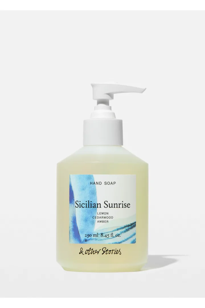 손을 깨끗하게 세정하고 가꿔주는 풍성한 솝이에요. 갓 수확한 레몬이 햇살에 달궈진 우드를 간지럽히며 새롭게 일깨우는 상쾌한 향이 특징이랍니다.