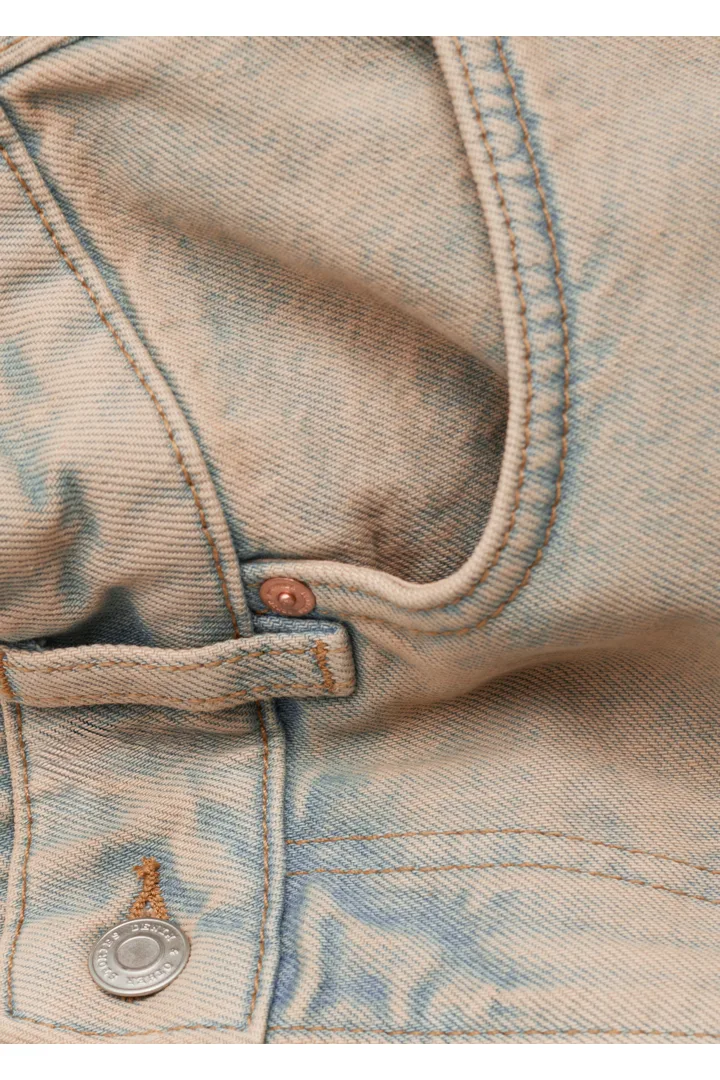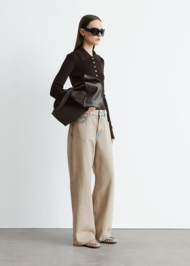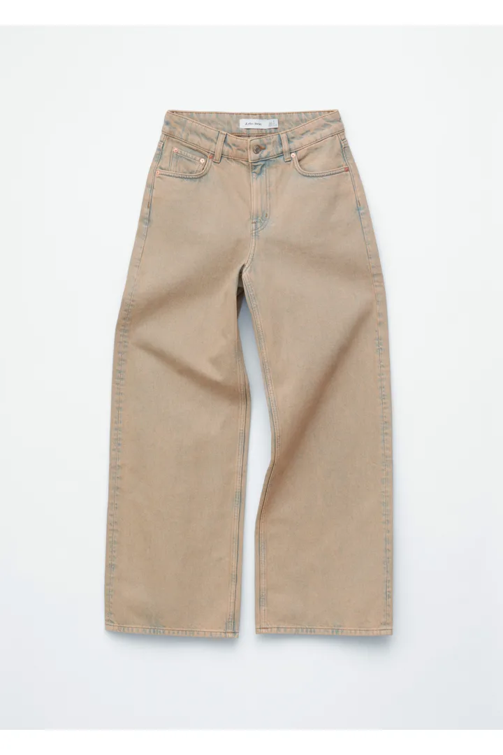 여유로운 실루엣의 진이에요. 레귤러 웨이스트, 지퍼 플라이와 단추, 클래식한 5 포켓 디자인, 발목까지 오는 롱 & 와이드 레그가 특징이랍니다.