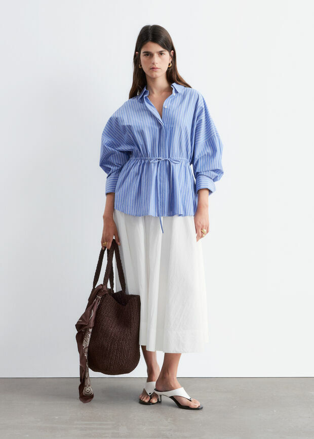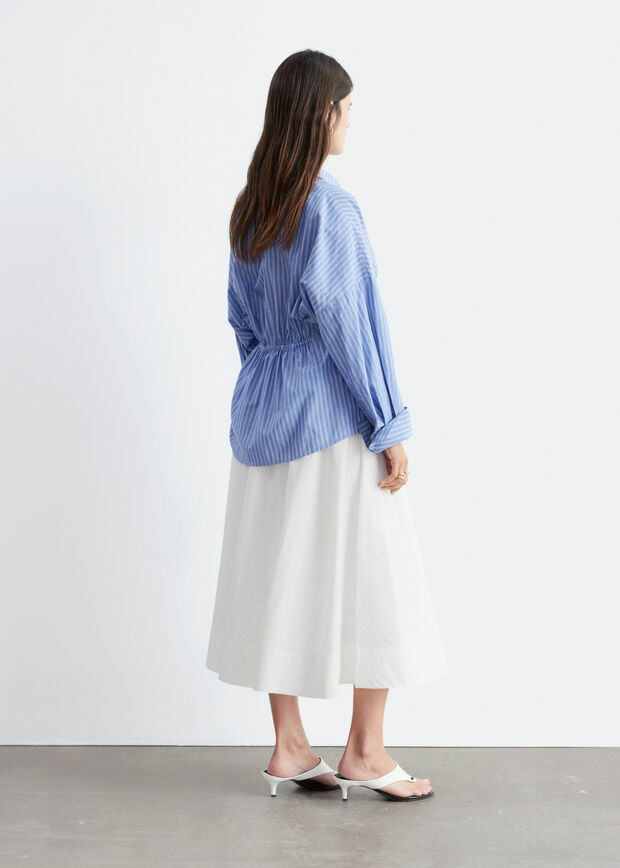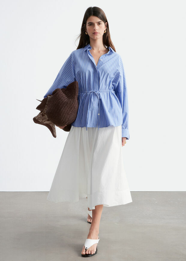 클래식 디자인을 신선한 감각으로 재해석한 코튼 포플린 셔츠예요. 산뜻하고 탄탄한 소재감이 특징으로, 히든 버튼 플래킷, 그리고 핏 조절이 가능한 허리의 드로스트링이 자리해 있어요. 탑스티치가 자리한 뒷면부 요크와 버튼 커프스가 완성미를 더한답니다.