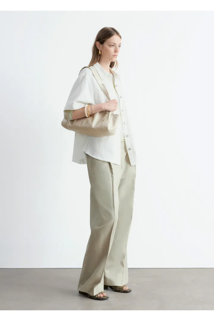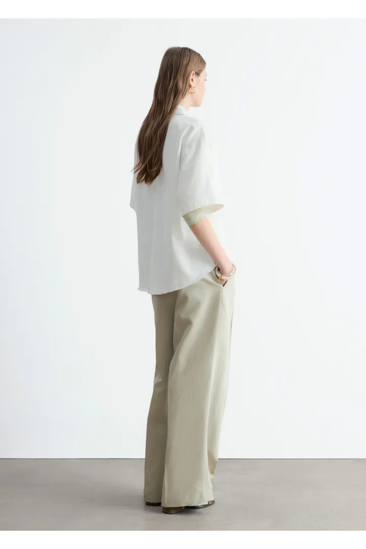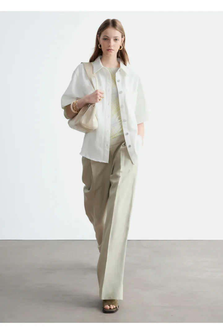캐주얼한 에센셜 아이템을 신선하게 재해석한 데님 셔츠예요. 텍스처가 살아있는 코튼 데님 소재로 탄생했으며 루즈한 실루엣, 너비감 있는 쇼트 슬리브, 가슴의 포켓, 그리고 은은한 빈티지 무드를 더해주는 로 엣지 밑단이 특징이랍니다.